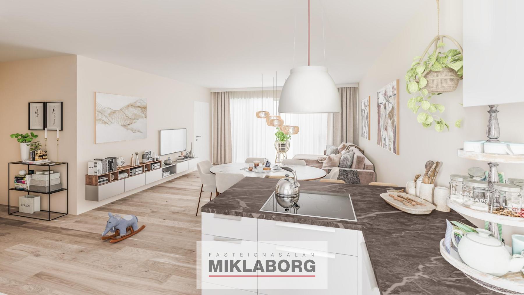Miklaborg kynnir: Vel skipulagðar og bjartar 3ja til fimm herbergja íbúðir í þremur húsum á fallegum stað í Hamraneshverfinu í Hafnarfirði. Ný Ásvallabraut veitir greiða samgönguleið til og frá svæðinu. Hamraneshverfi er vel staðsett hverfi í mikilli uppbyggingu með skóla, leikskóla og falleg útivistarsvæði í í næsta nágrenni.