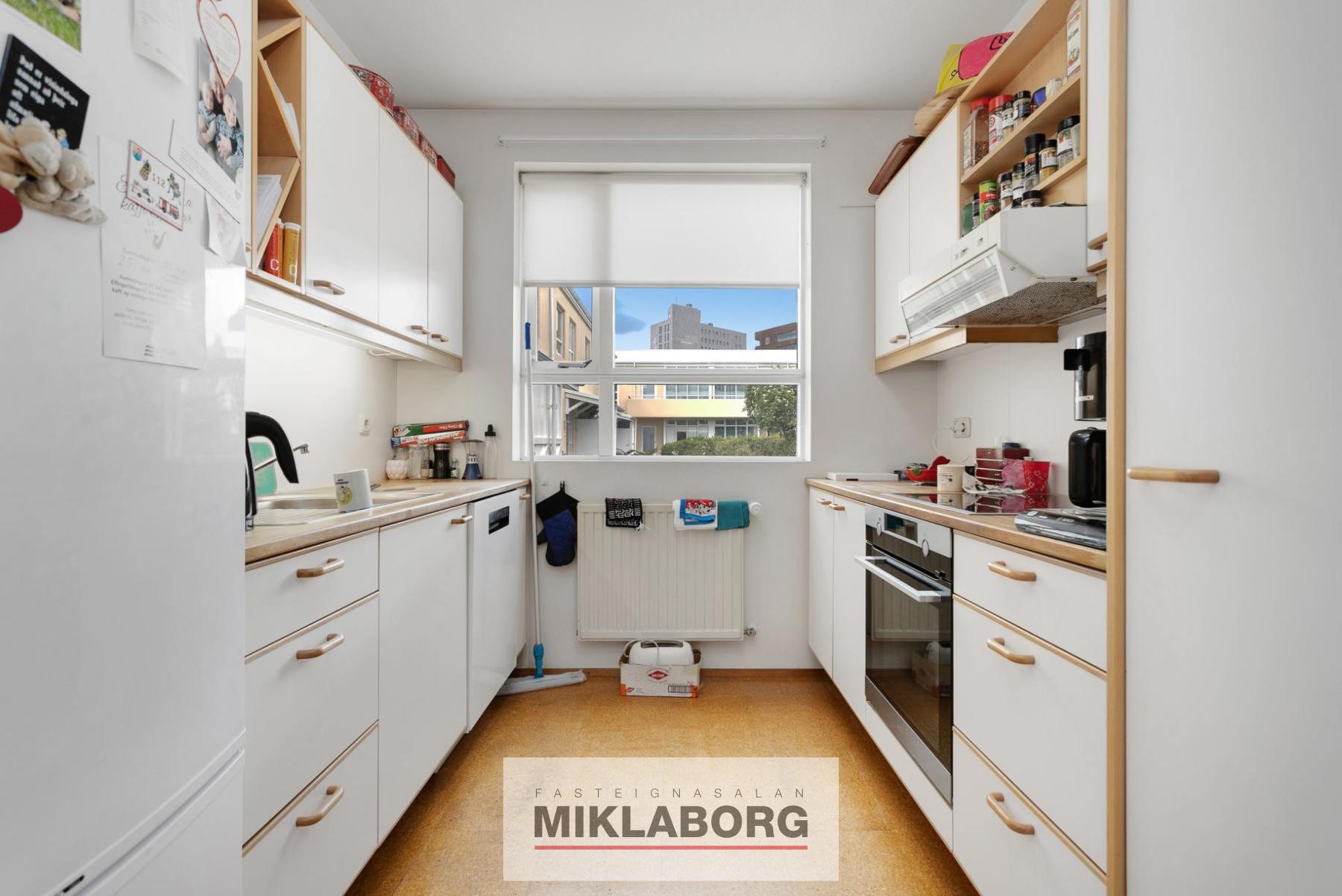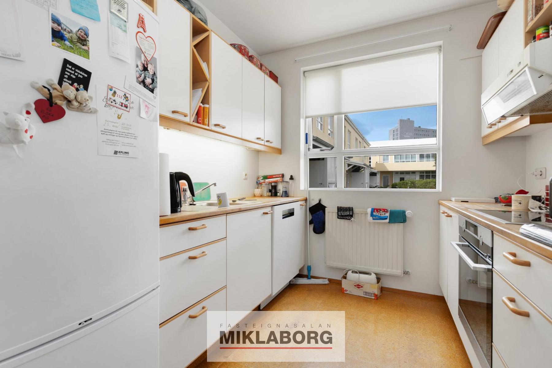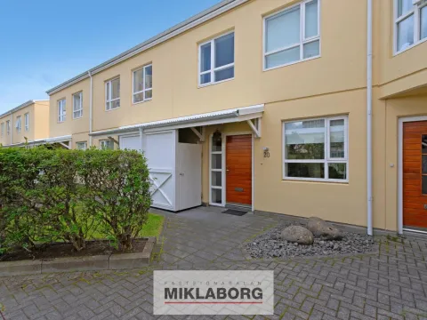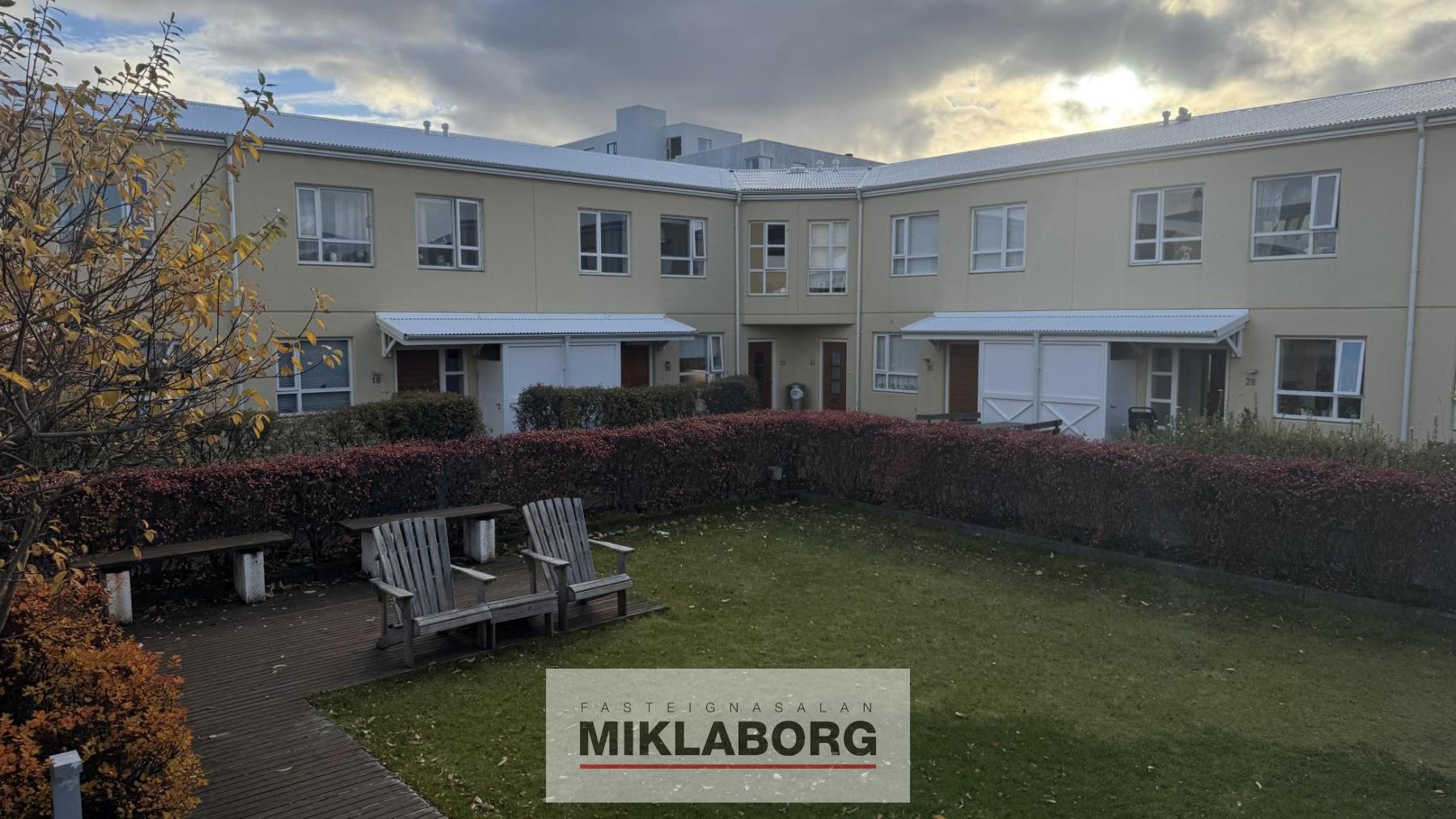 Miklaborg kynnir: 124,6 m2 raðhús á 2 hæðum miðsvæðis í Reykjavík. Þar af er íbúðin sjálf 118.6 m2 og sér geymsla í kjallara 6.0 m2. Í húsinu eru 3 svefnherbergi. 2 snyrtingar. Kortkflísar á gólfum. Bílastæði í lokaðri bílageymslu. Húsið er að mestu upprunalegt að innan og hefur fengið gott viðhald að utan. Barnvænn lokaður garður með leiktækjum í sameign er við húsið.
