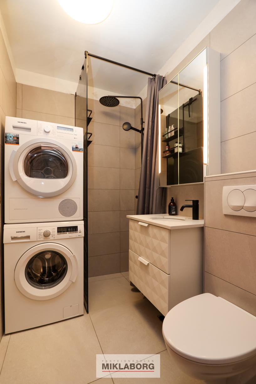 - Þvottahús og þurrkaðstaða: Rúmgott og snyrtilegt rými á jarðhæð með sameiginlegum vélum, nýlega endurnýjað en íbúðin sjálf er með þvottavél og þurrkara á baðherbergi.