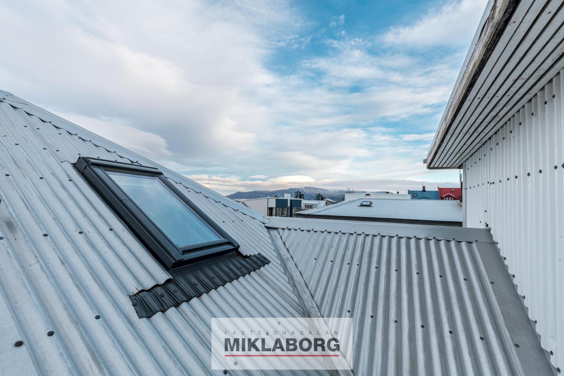 Eignin er 40,9 m², eigninni fylgir aðstaða í risi en þar er tengi fyrir þvottavél og einnig eru sameiginlegar þak svalir. Einungis tvær íbúðir á hæð.