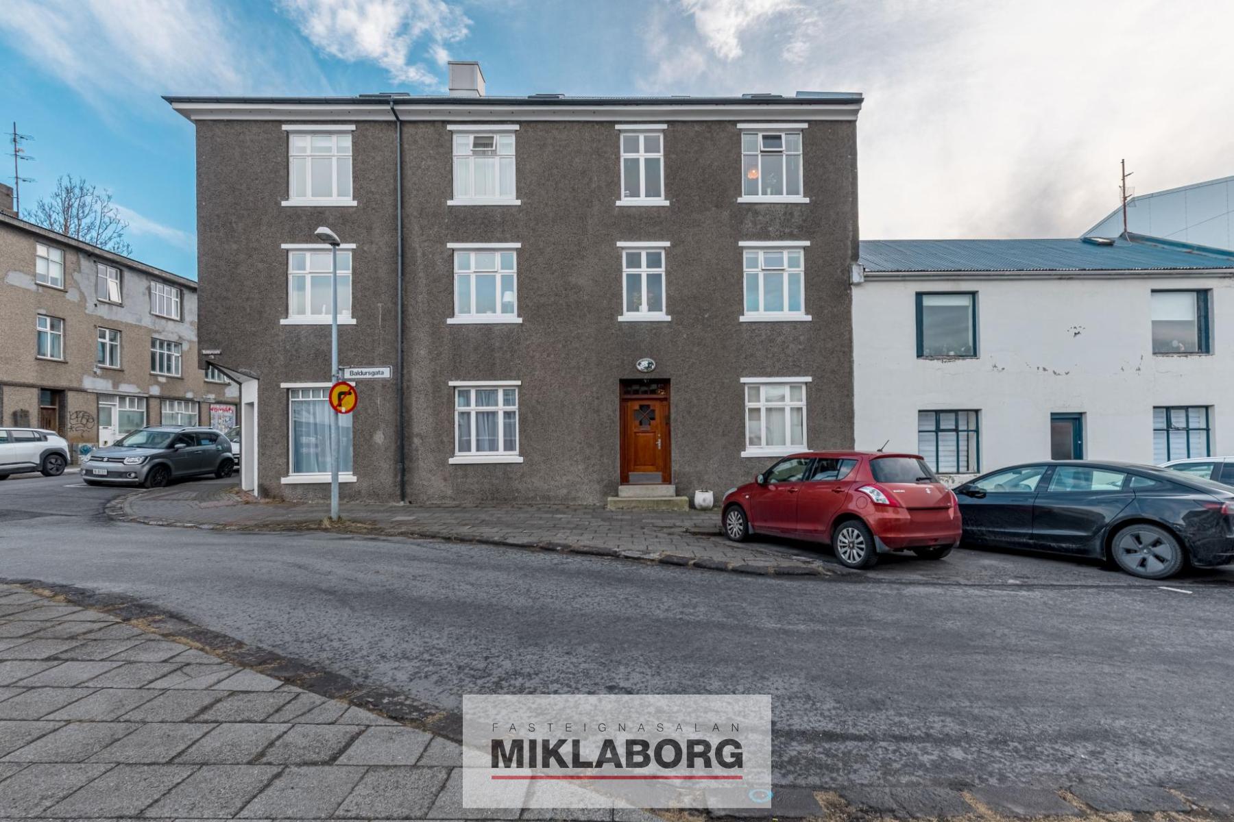 Flotta og vel staðsett 2ja herbergja íbúð á þriðju hæð í litlu fjölbýlishúsi við Baldursgötu, í miðbæ Reykjavík.
