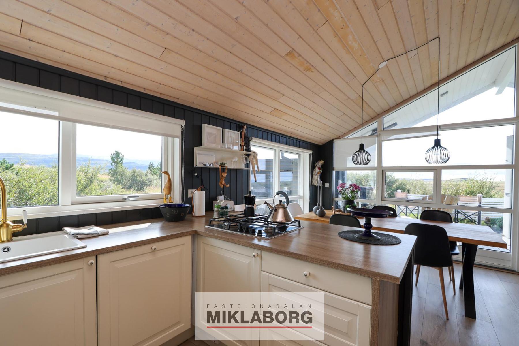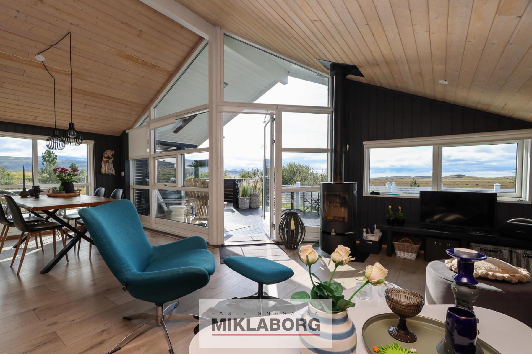 Bústaðurinn er neðarlega í hverfinu, með óspillta náttúru allt í kring—Blundsvatn og fyrsta flokks berjaland eru í nokkurra tuga metra fjarlægð beint á móti húsinu. Útsýnið yfir fjallahringinn er ómótstæðilegt.