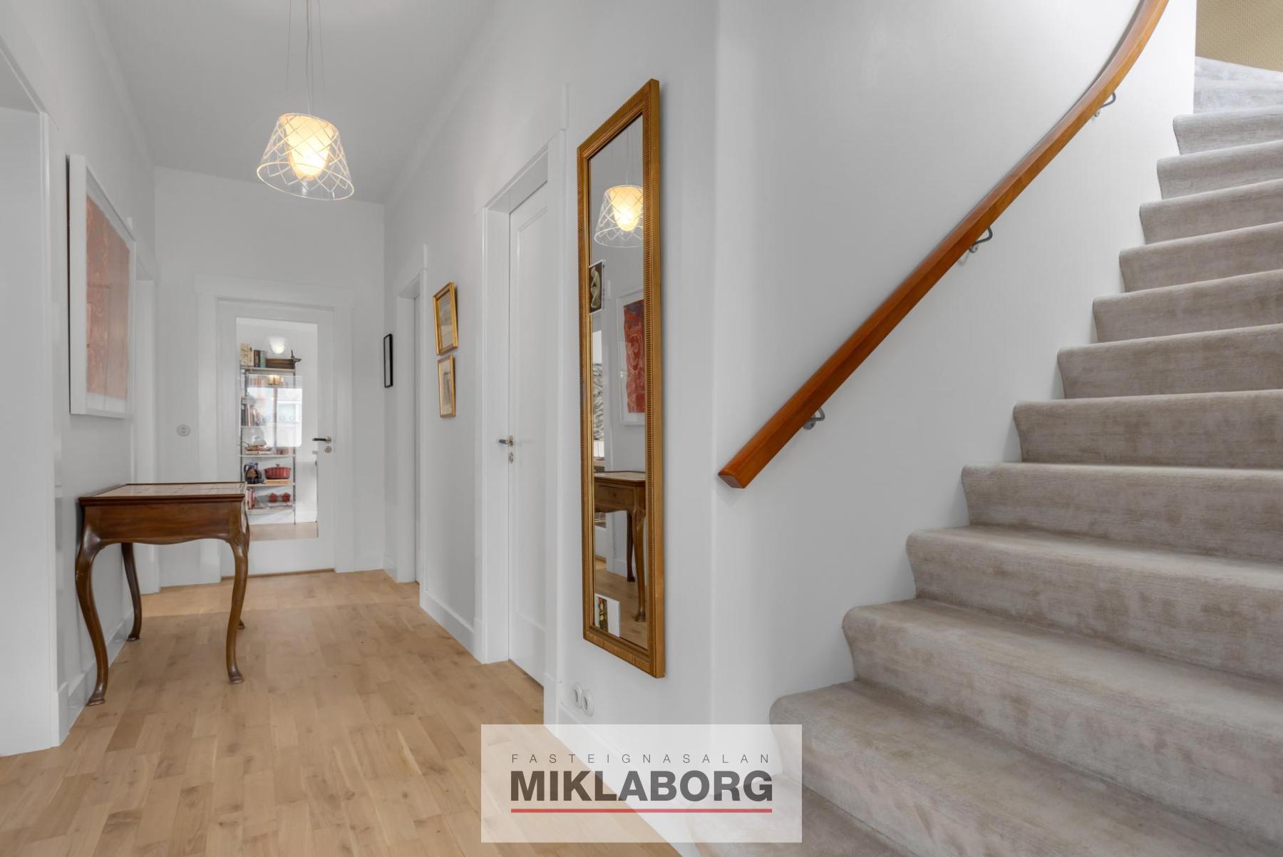 Miklaborg kynnir: Glæsilegt tæplega 400 m2 einbýlishús á frábærum stað í Reykjavík. Húsið er mikið endurnýjað og meðal annars eru eldhús og baðherbergi ný standsett.