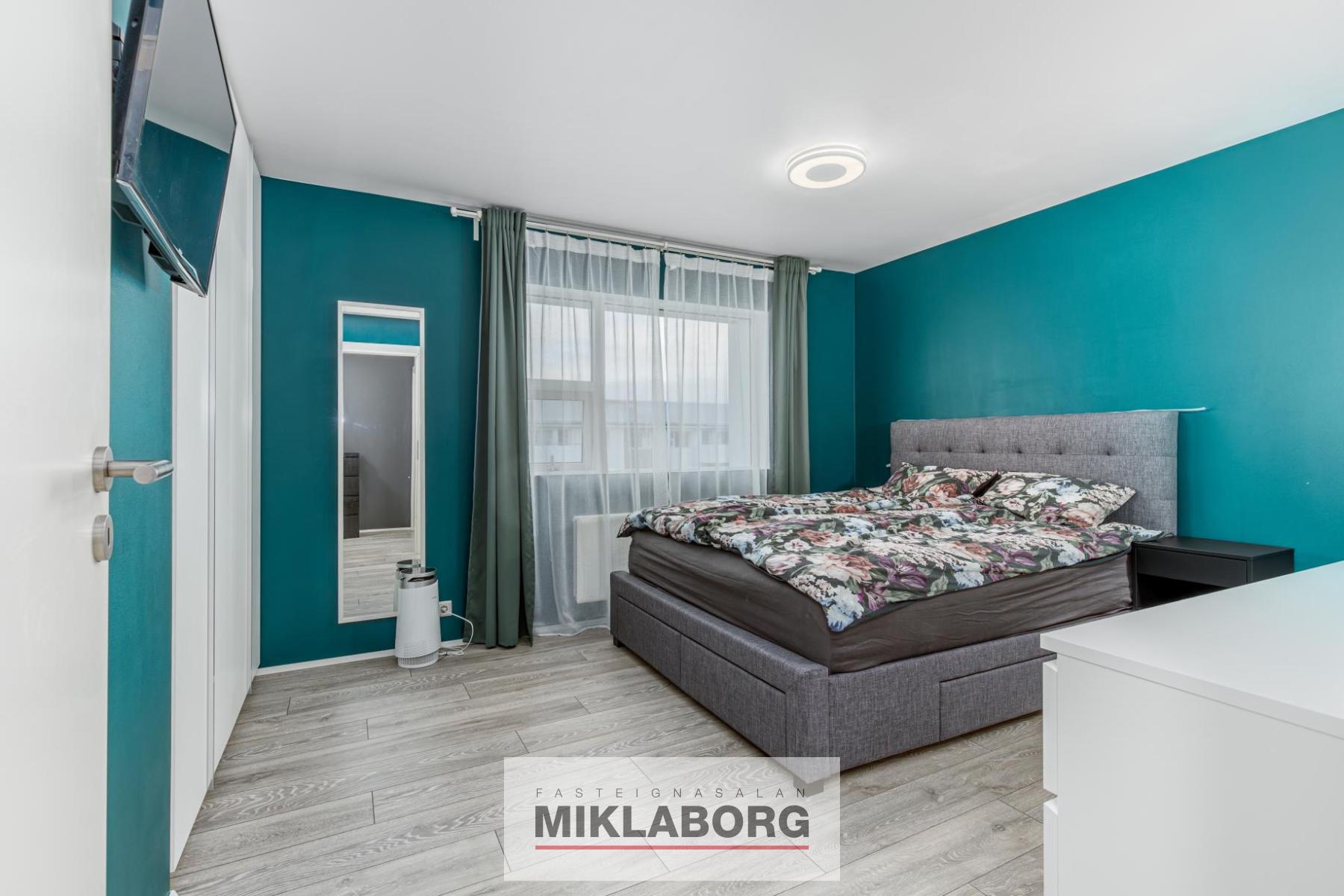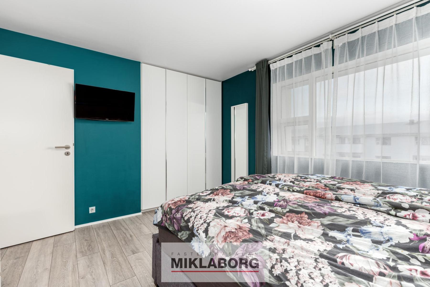 Svefnherbergin eru tvö, bæði rúmgóð og snyrtileg, fataskápur er innbyggður í herbergjum.