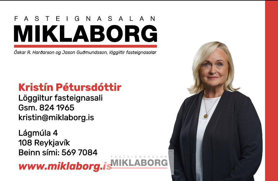 Kristín Pétursdóttir löggiltur fasteignasali í síma 824-1965 eða kristin@miklaborg.is