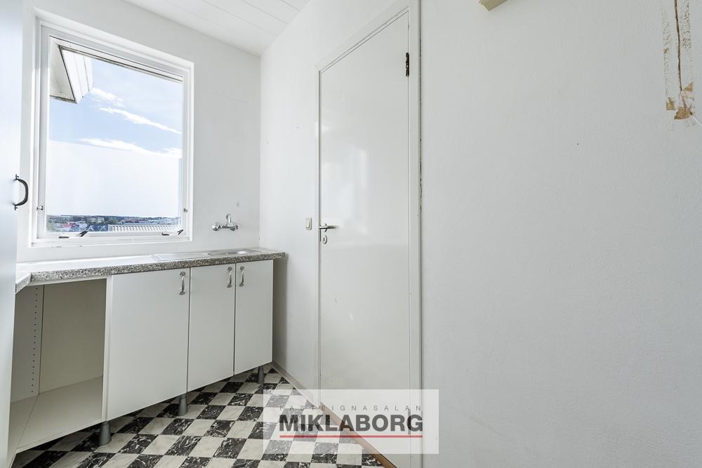 Inngengt er úr eldhúsi inn í sér þvottahús.