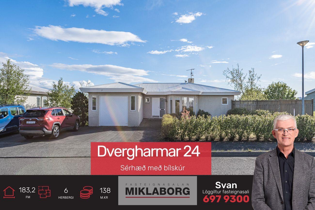 Miklaborg kynnir til sölu: 183,2 fm efri sérhæð í tvíbýli við Dverghamra 24 í Grafarvoginn. Húsnæðið skiptist í stofu, borðstofu, sjónvarpsstofu(mögulega svefnherbergi), 3 svefnherbergi, nýlegt eldhús, nýlegt baðherbergi, þvottahús og rúmgóðan bílskúr. Út frá stofu er sólpallur með skjólveggjum. Falleg eign með góðu útsýni í barnvænu umhverfi. Laus við kaupsamning.