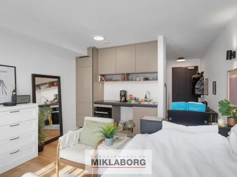 Miklaborg kynnir: Góð studioíbúð á 3. hæð með svölum. Hlýleg íbúð með sérsmíðuðum Voké-III innréttingum og vinyl parket á gólfum utan baðherbergis sem er flísalagt. Miele eldhústæki fylgja (ofn, span-helluborð). GROHE tæki eru á baði og í eldhúsi. Stílhrein hönnun og vönduð gæði. Íbúðin er með vélrænni loftræstingu. Íbúðin getur verið laus við kaupsamning.