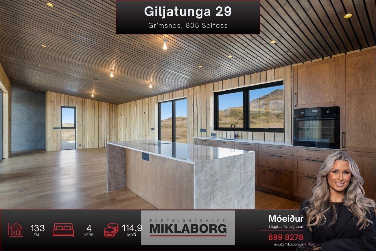 Nýtt og stórglæsilegt 133m2 sumarhús / heilsárshús með frábæru útsýni og gistileyfi 2 (airbnb/booking 365 daga á ári) á eignarlóð, við Giljatungu 29, í landi Ásgarðs í Grímsnes-og Grafningshreppi.