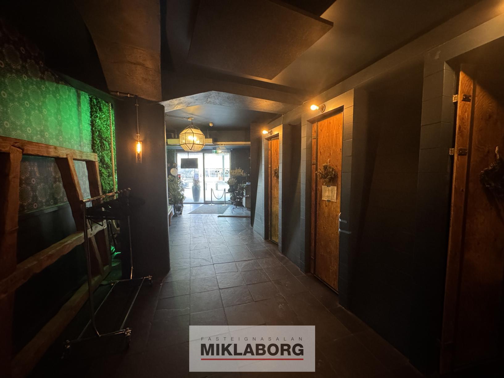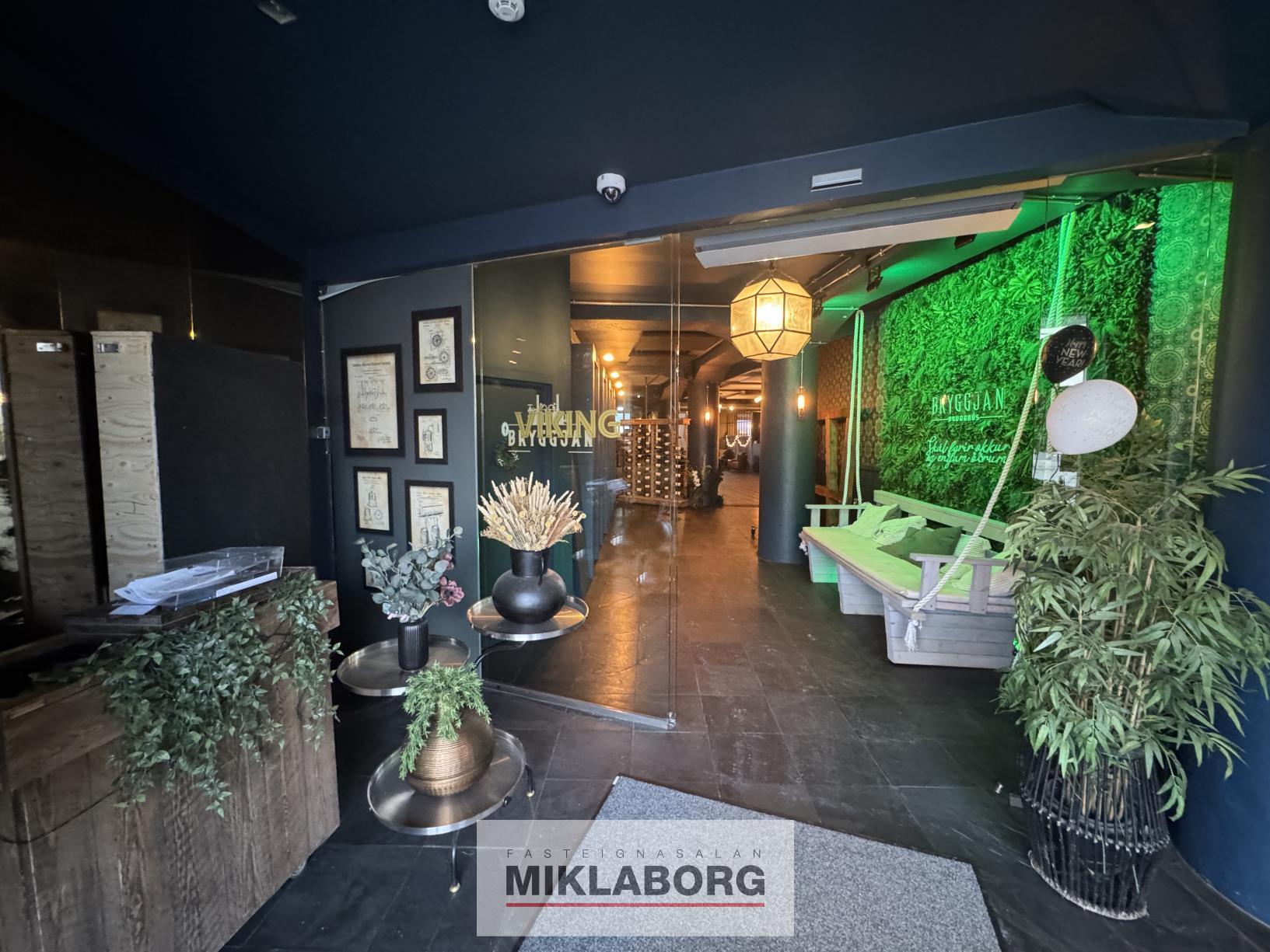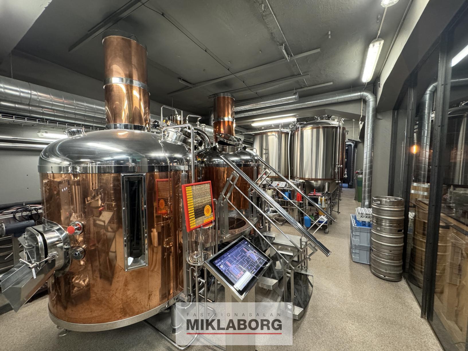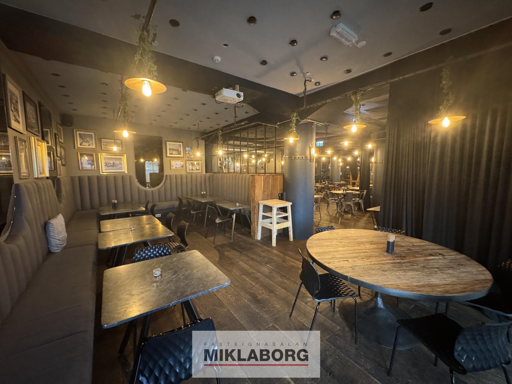 Nánari lýsing: Komið er inn í flísalagt anddyri. Stór bar er fyrir miðju og til hliðar er veitingasalur og þar eru í dag bruggtæki en staðurinn er meðal annars þekktur fyrir að brugga sinn eigin bjór. Bak við barinn er fullbúið eldhús og kælar. Meðfram suðurhlið hússins er veitingasalur sem er með gluggum sem snúa út að bryggjunni og þar fyrir utan er útisvæði með stórum timburpalli. Staðurinn er fallega innréttur með vönduðum innréttingum. Húsnæðið hefur verið í leigu en leigusamningur er útrunninn og húsnæðið því laust til afhendingar fyrir kaupanda við kaupsamning. Öll tæki og búnaður sem er til staðar í húsnæðinu getur fylgt með í kaupunum.