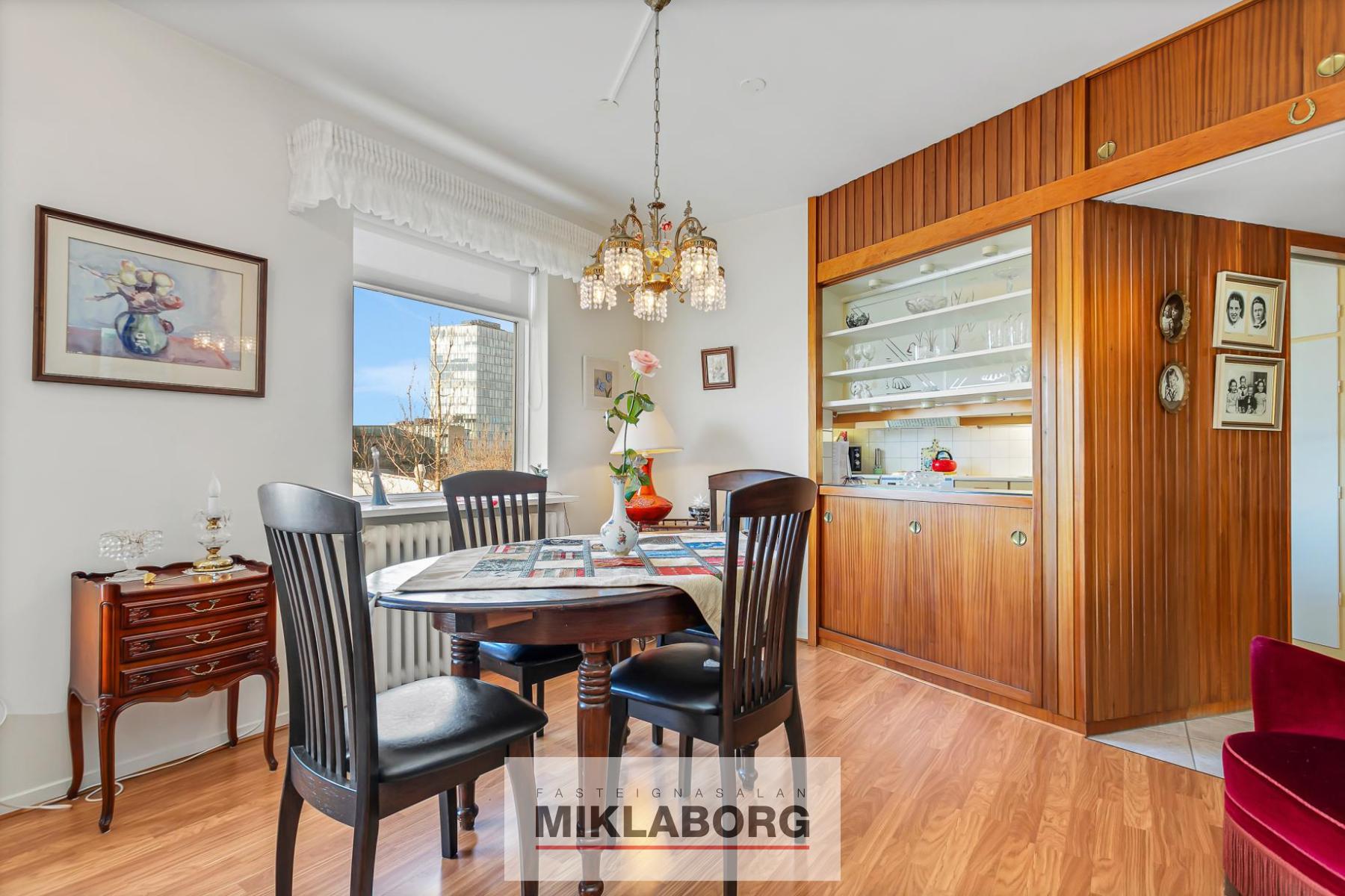 Miklaborg kynnir: þriggja Herbergja íbúð á 4. hæð í lyftu húsi við Hátún 4, Reykjavík. Eignin skiptist í forstofu, tvö svefnherbergi, stofu, eldhús, baðherbergi, sér geymslu í kjallara og sameiginlegt þvottahús á jarðhæð.