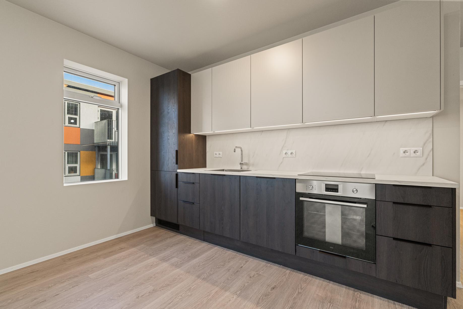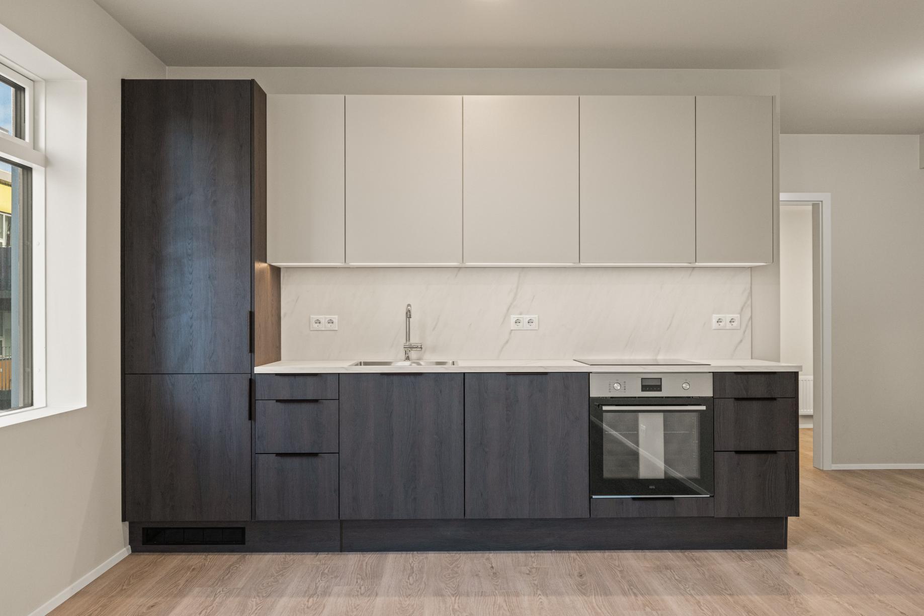 Eldhús er með fallegri innréttingu frá HTH og vönduðum tækjum frá AEG Tengi er fyrir uppþvottavél og gert er ráð fyrir innfeldum ísskáp í innréttingu. Sér loftskiptikerfi í hverri íbúð.