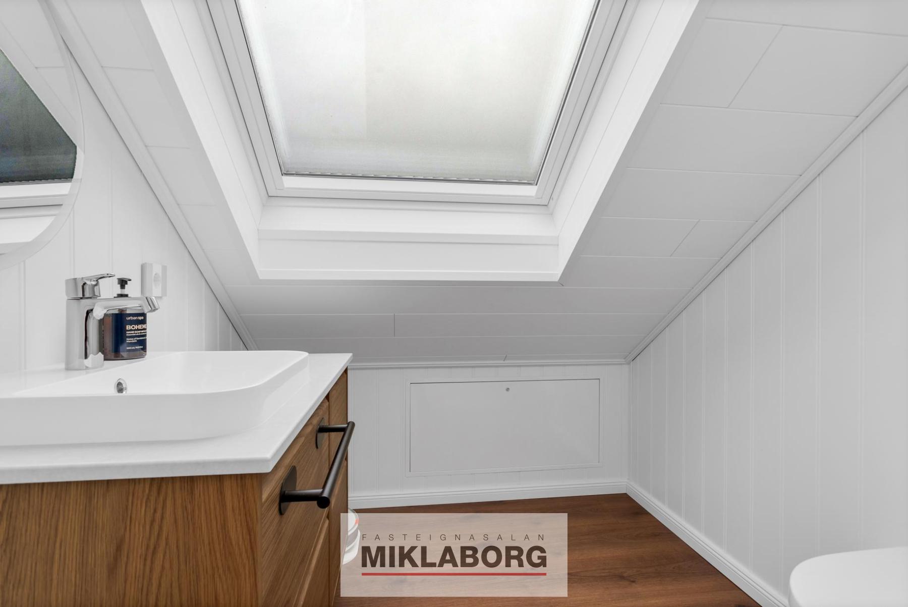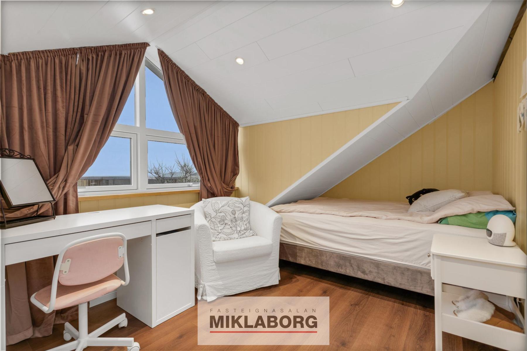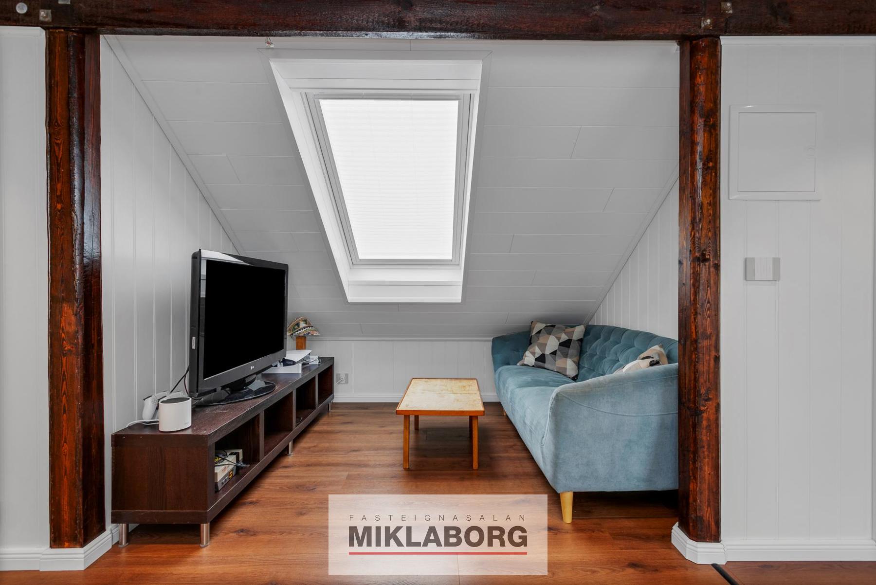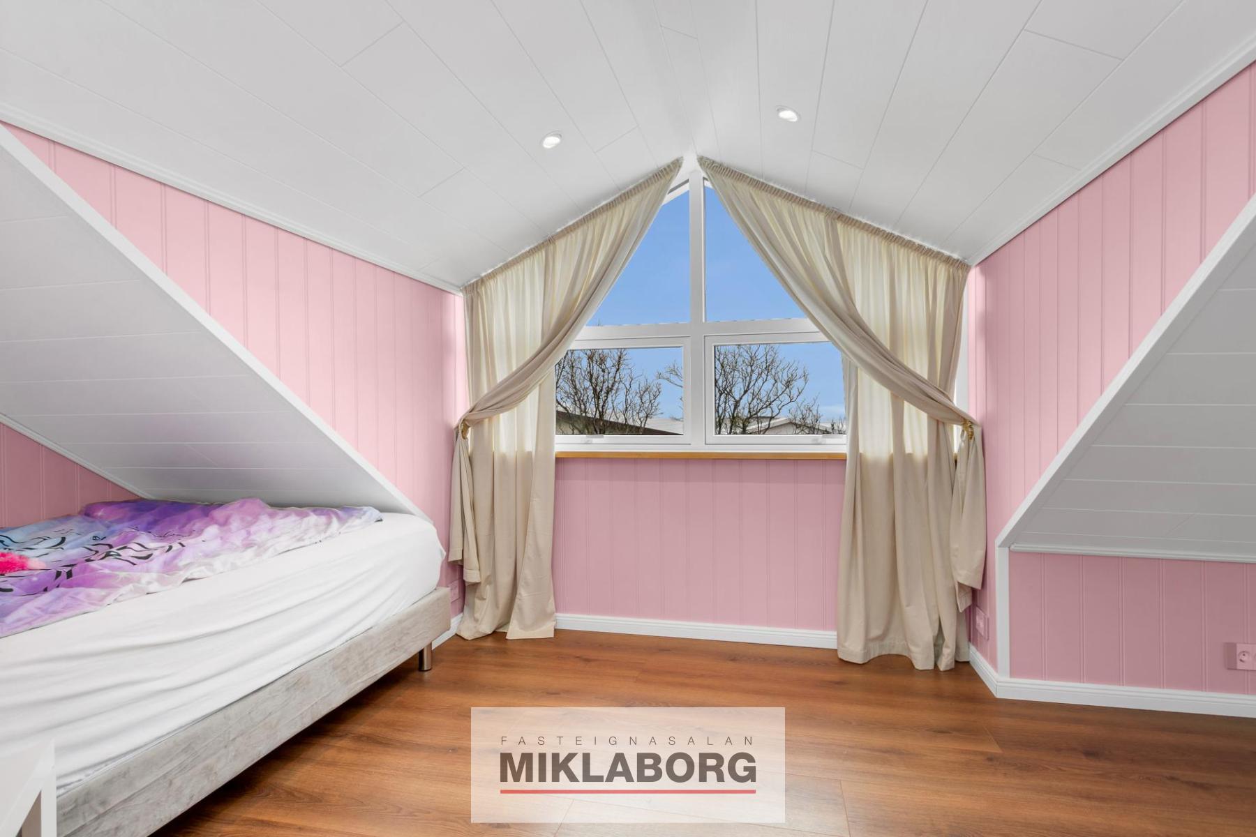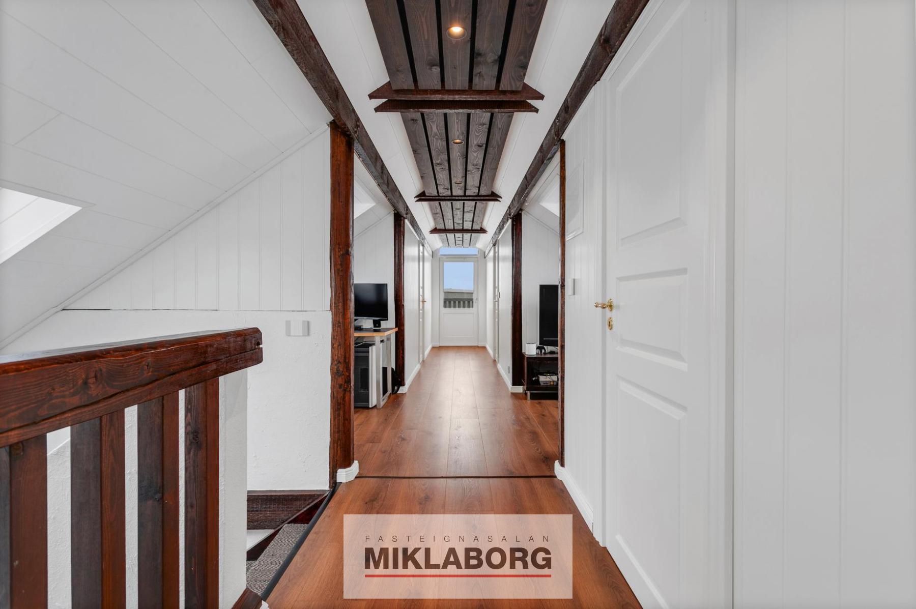 - Svefnherbergi: Fjögur rúmgóð herbergi, öll með fallegu parketi og nýlegum kvistum sem gefa rýminu aukna lofthæð og birtu.