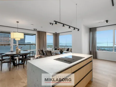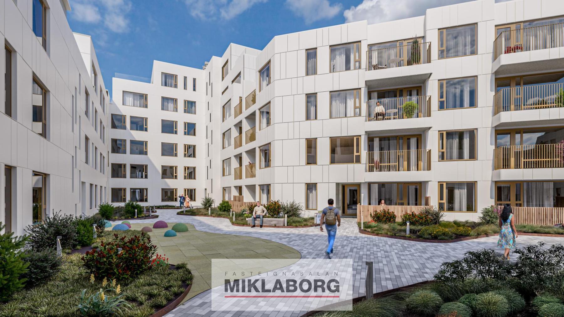 Nýr íbúðakjarni samanstendur af 115 íbúðum á 6 hæðum og afhendist í fjórum áföngum. Byggingin er í randbyggðarformi umhverfis fallegan inngarð og er hluti af nýju og spennandi hverfi á Kirkjusandi. Græn svæði umlykja húsið ásamt sameiginlegum þakgarði.
