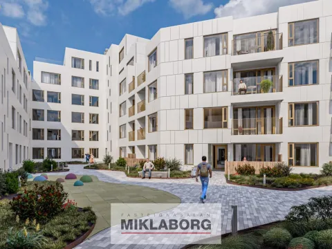 Nýr íbúðakjarni samanstendur af 115 íbúðum á 6 hæðum og afhendist í fjórum áföngum. Byggingin er í randbyggðarformi umhverfis fallegan inngarð og er hluti af nýju og spennandi hverfi á Kirkjusandi. Græn svæði umlykja húsið ásamt sameiginlegum þakgarði.