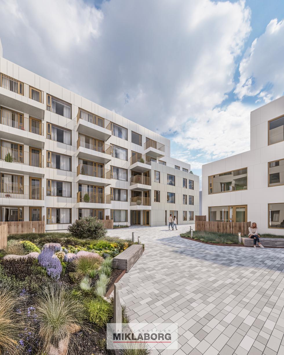 Nýr íbúðakjarni sem samanstendur af 115 íbúðum á 6 hæðum afhendast í 4 áföngum . Íbúðarkjarninn í randbyggðarformi umhverfis innigarð. Húsið er partur af nýju hverfi á Kirkjusandi. Græn svæði umlykja bygginguna ásamt þakgarði.