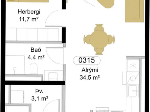 Íbúð 315 er falleg 3ja herbergja íbúð á 3.hæð með yfirbyggðar svalir