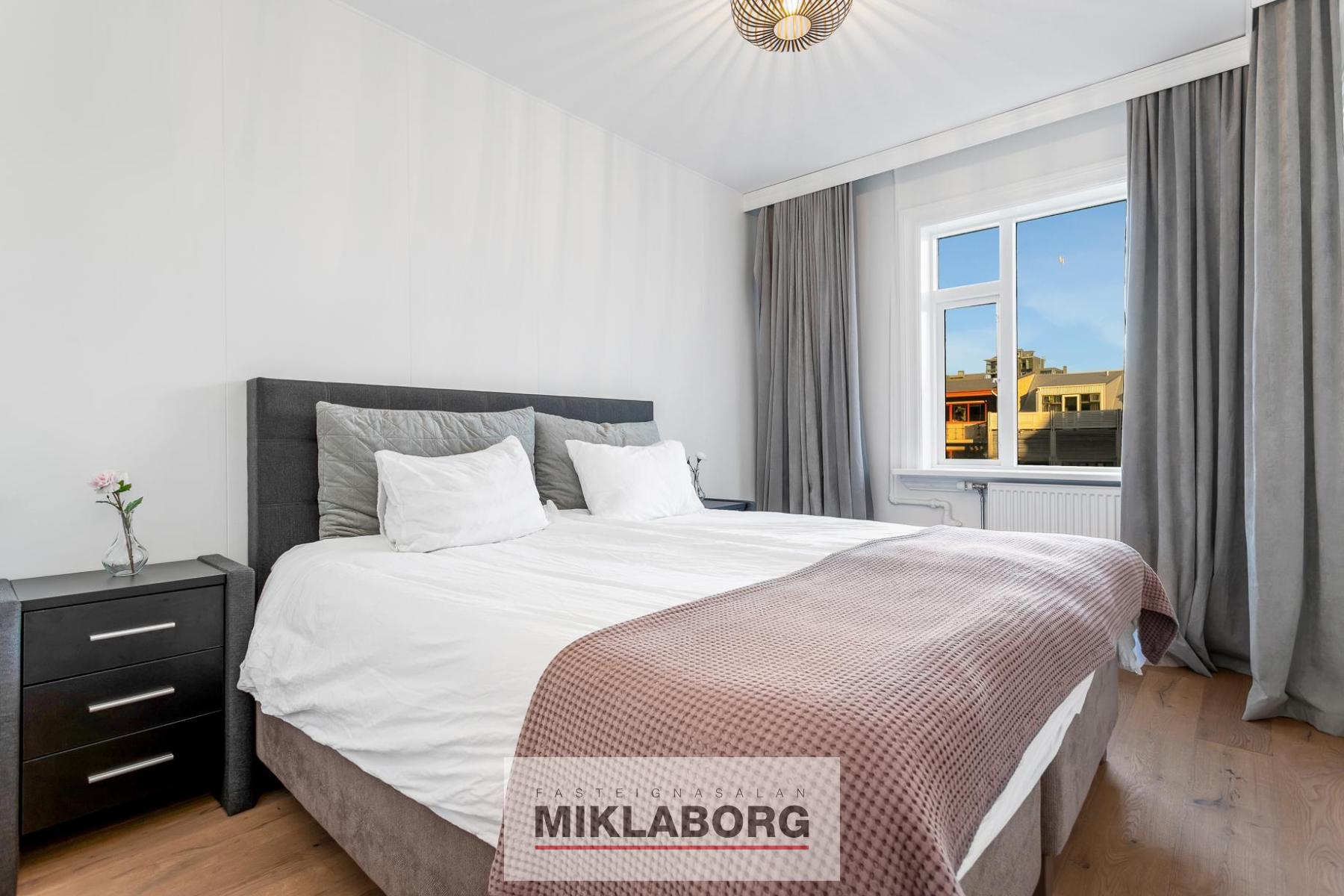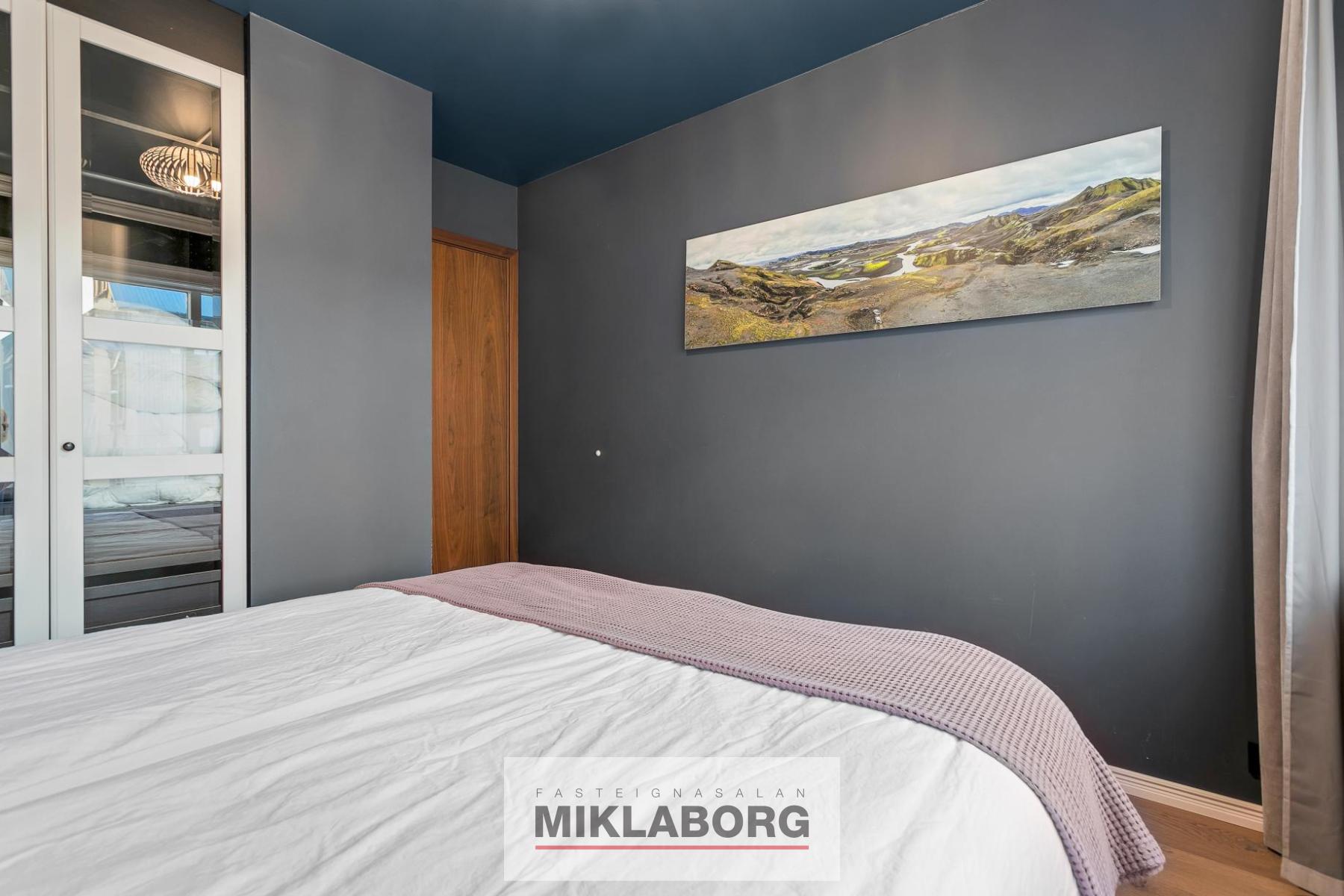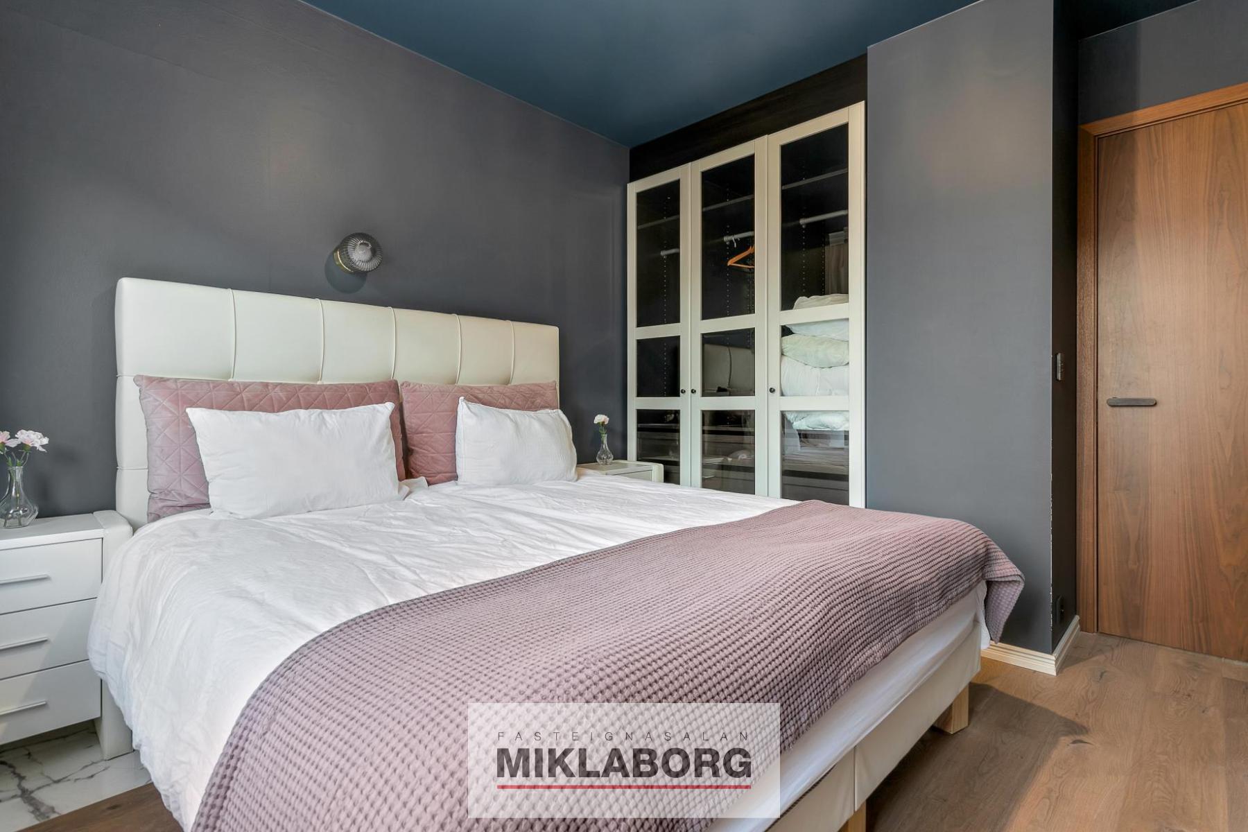 - Tvö rúmgóð svefnherbergi með eikarparketi og sérsmíðuðum innréttingum.