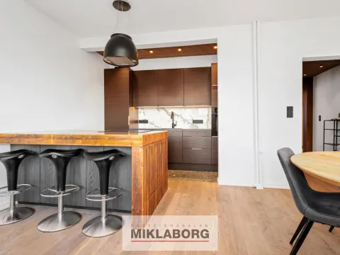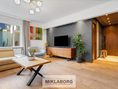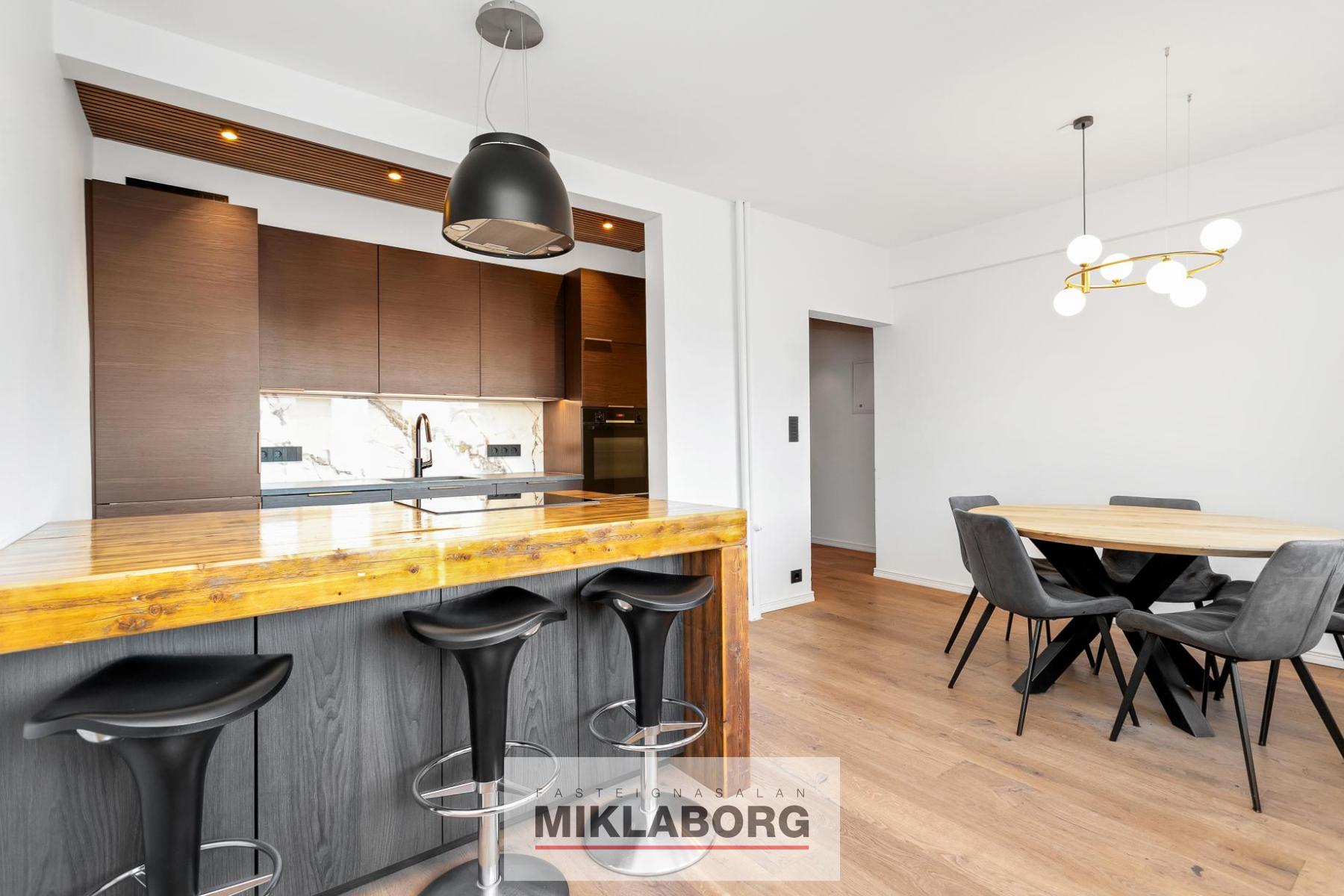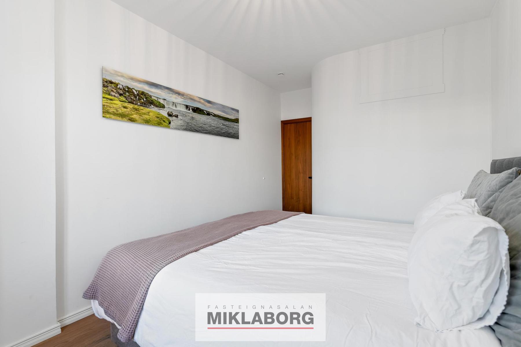 - Tvö rúmgóð svefnherbergi með eikarparketi og sérsmíðuðum innréttingum.