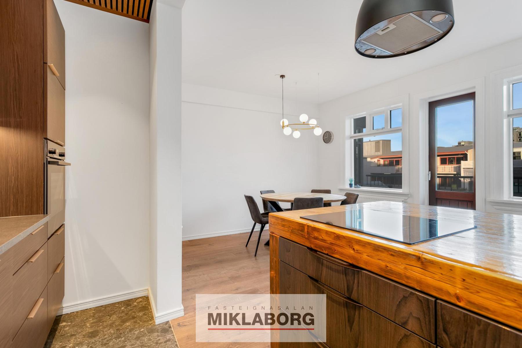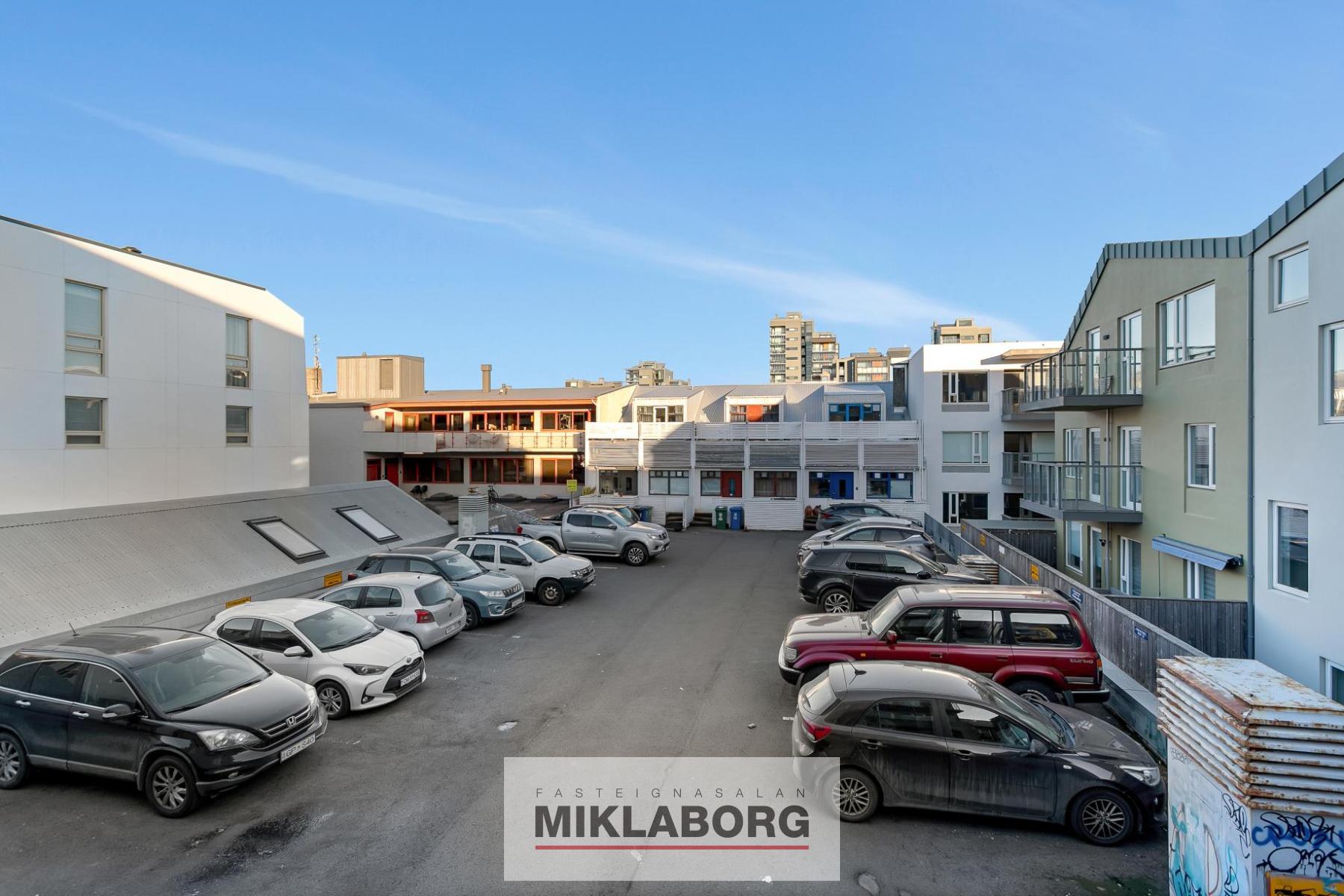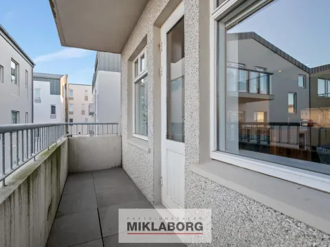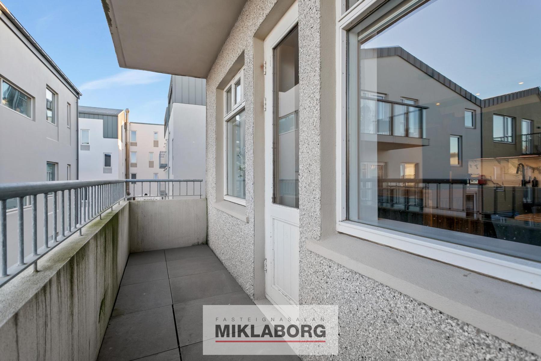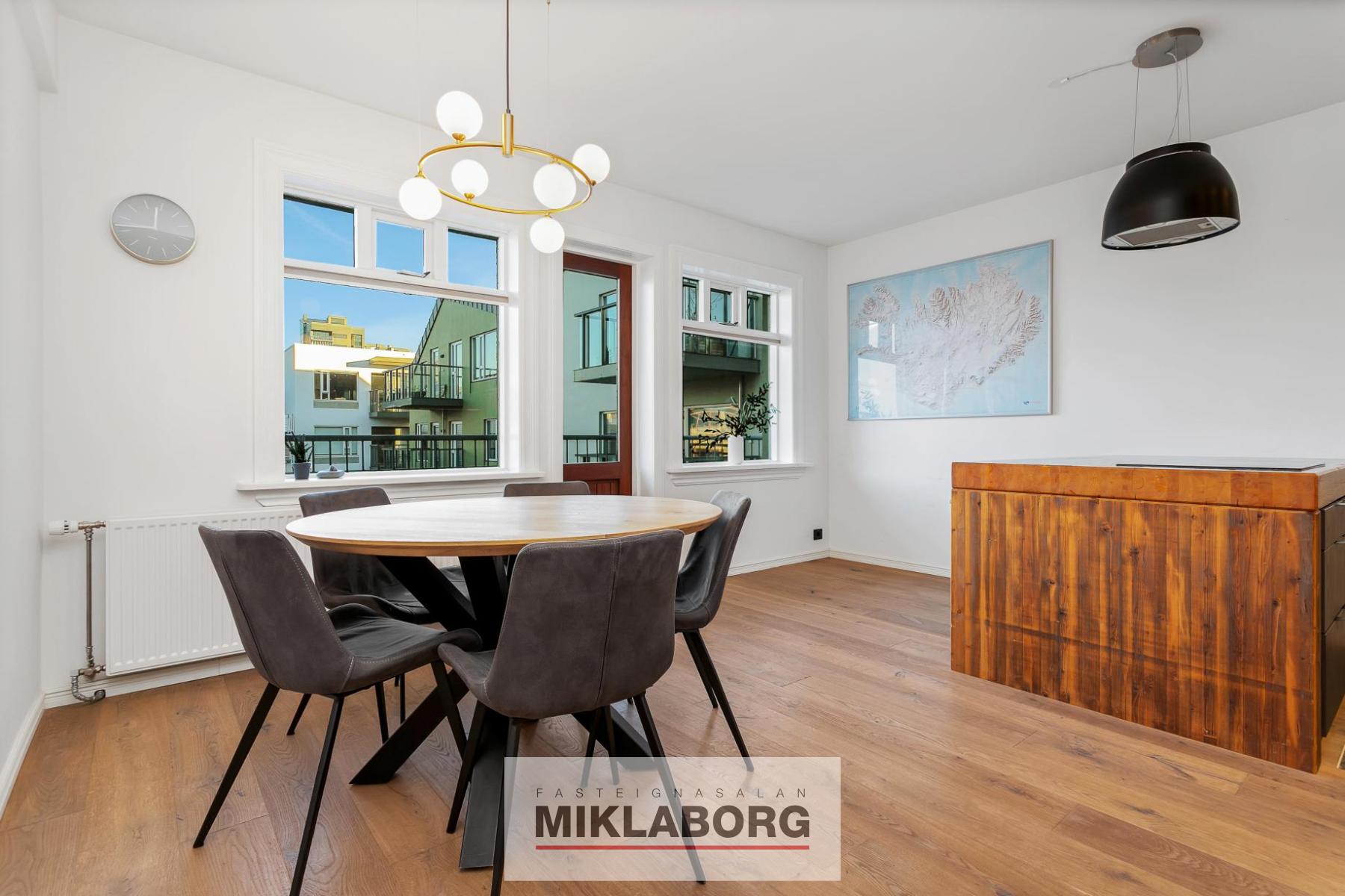 - Borðstofu með útgengi á svalir sem snúa í norður að friðsælli baklóð þar sem bílastæðið er.
