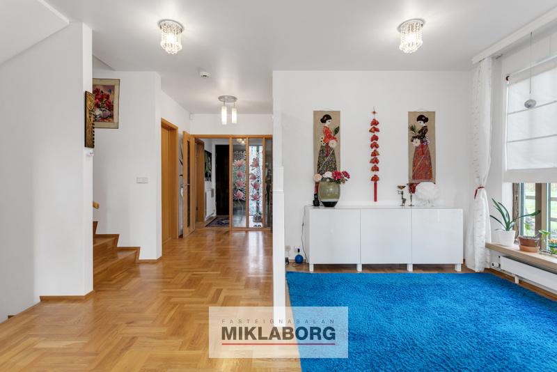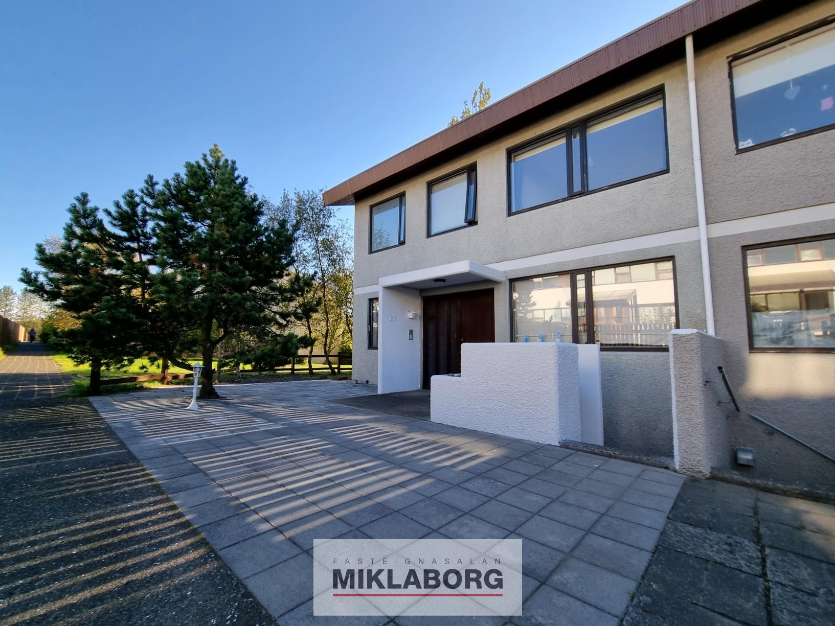 Miklaborg kynnir: Melbær 21, Tveggja hæða enda raðhús með með auka íbúð í kjallara og bílskúr. Aðalíbúð skiptist í forstofu, 4 svefnherbergi, eldhús, 2 baðherbergi, stofu, borðstofu, sjónvarpshol, þvottahús og geymslu. Auka íbúð skiptist í eldhús, baðherbergi, 2 svefnherbergi, stofu,geymslu og þvottahús.