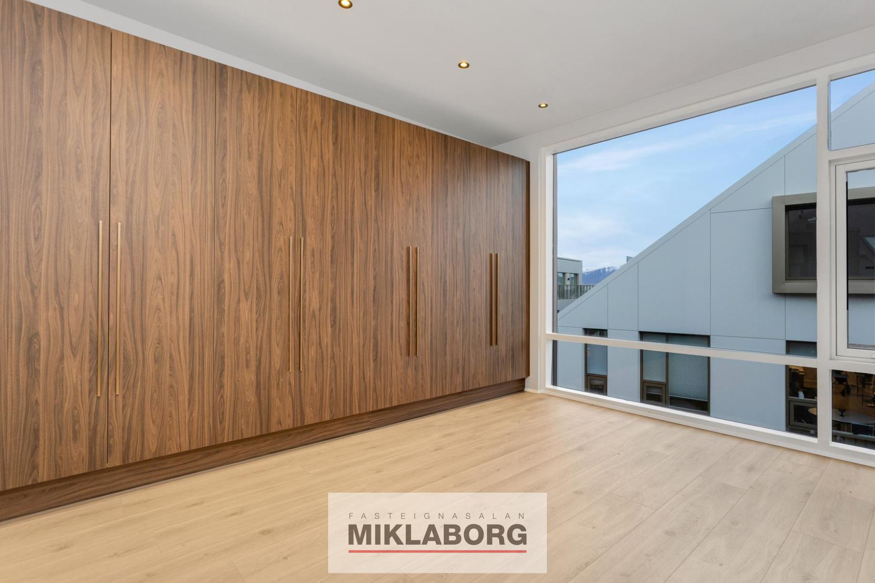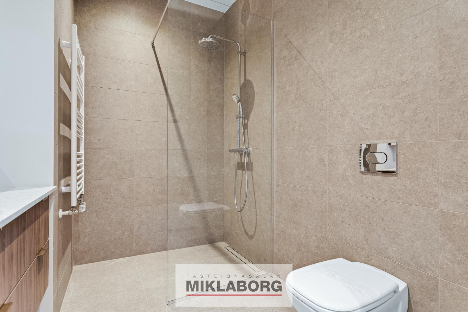 Birt stærð eignar er 160,7 m², þar af 31,2m2 bílskúr í bílakjallara og 26.4 m2 sérgeymsla. Eigninni fylgir einnig sérmerkt bílastæði í bílakjallara.