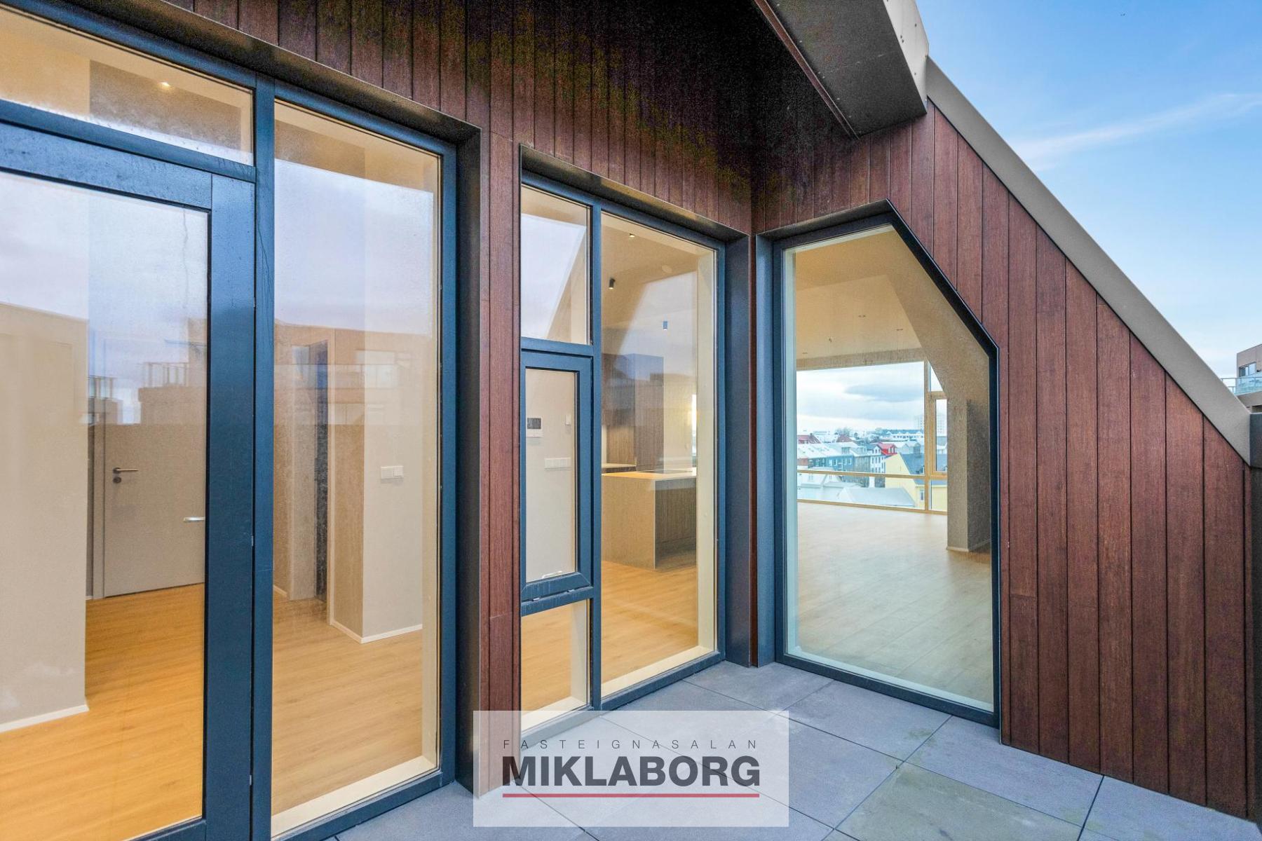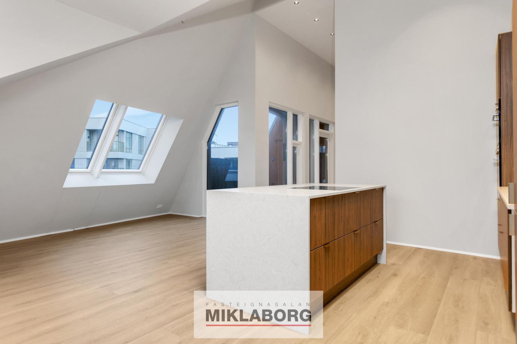 Falleg, afar björt og vel skipulögð 3ja herbergja þakíbúð með aukinni lofthæð í vönduðu og viðhaldsléttu húsi við Mýrargötu 37 á Héðinsreit, á jaðri Vesturbæjar í 101 Reykjavík. Húsið er hannað af Arkþing/Nordic og innanhúshönnun íbúðar er frá Sæju.