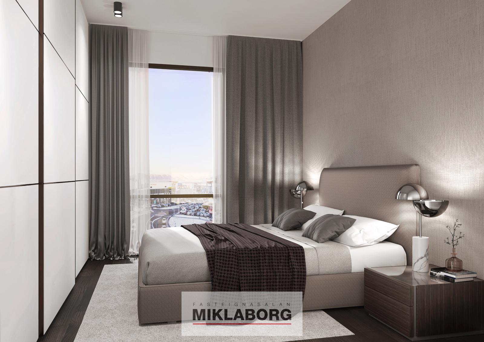 Íbúð 306 er 4ra herbergja íbúð á 4. hæð og snýr út að Mýrargötu. Íbúar hafa aðgang að verslun og þjónustu. Íbúðarrýmið skiptist í stóra og bjarta stofu og eldhús með eldunareyju.