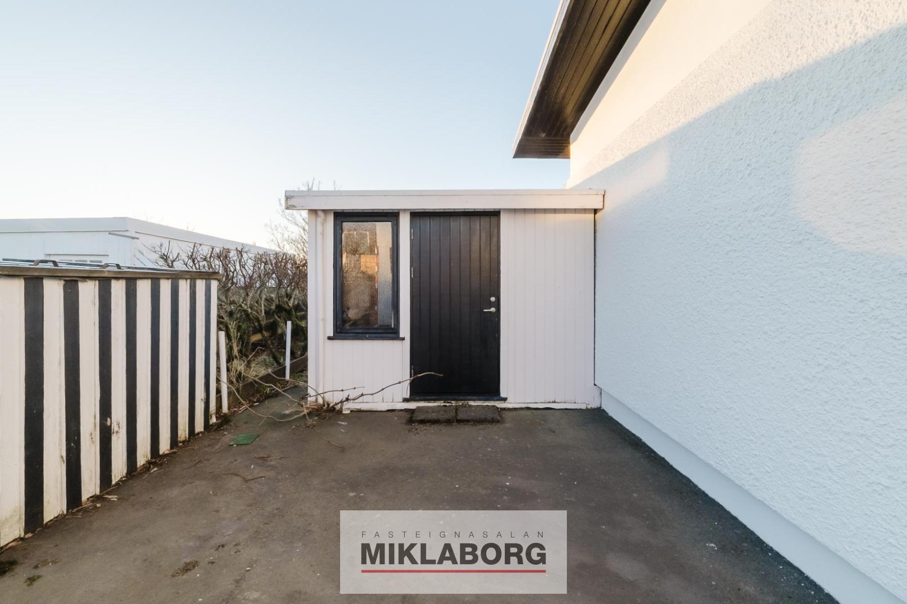Rúmgóður bílskúr fylgir eigninni ásamt góðum geymslum á baklóð hússins.
