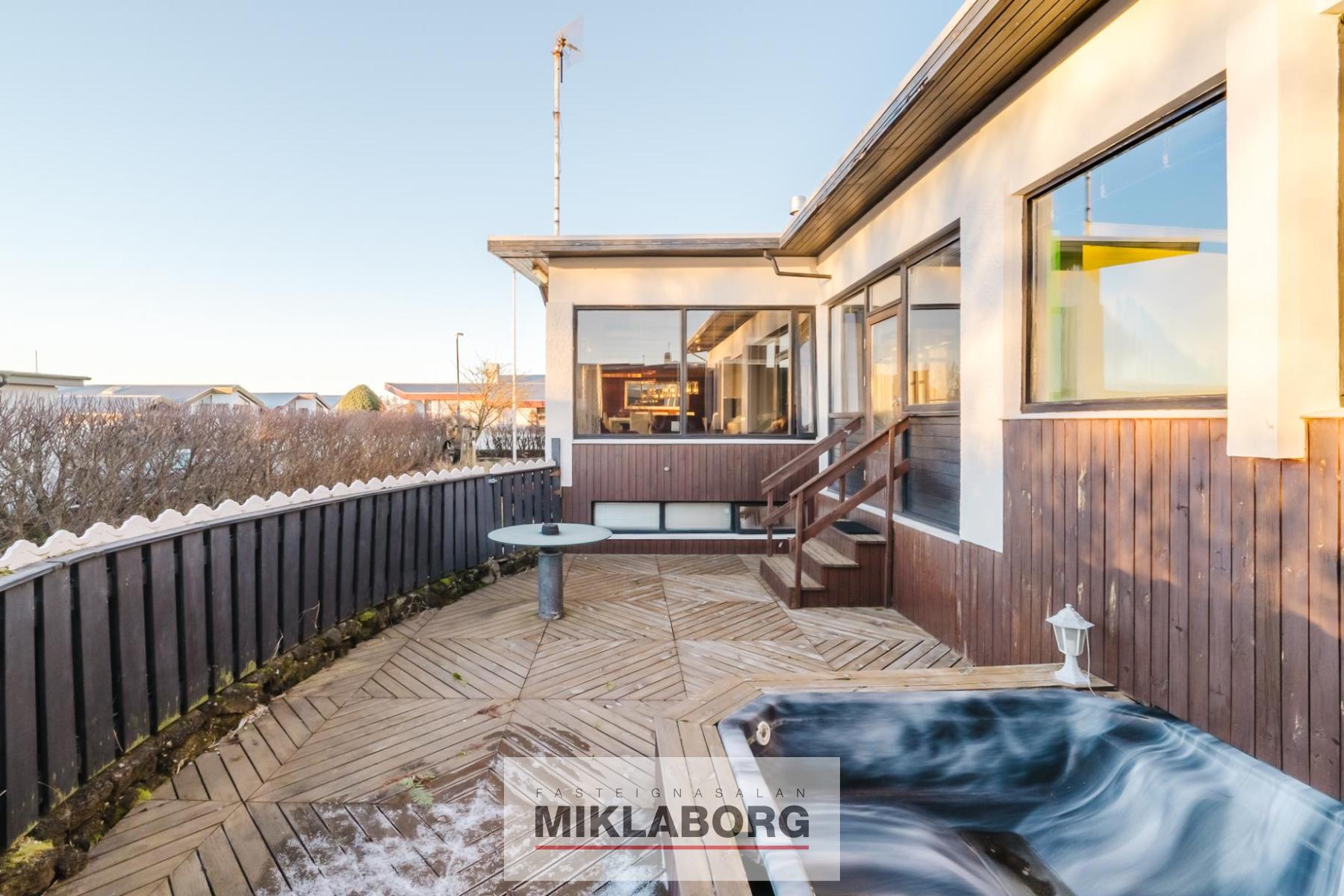 Miklaborg kynnir: Bjart og vel skipulagt 194 fm einbýlishús á einni hæð, á þessum vinsæla stað á Seltjarnarnesi, auk bílskúrs og óskráðs rýmis í kjallara með sér inngangi sem getur nýst sem unglingarými, tómstundaherbergi eða með möguleika á útleigu.
