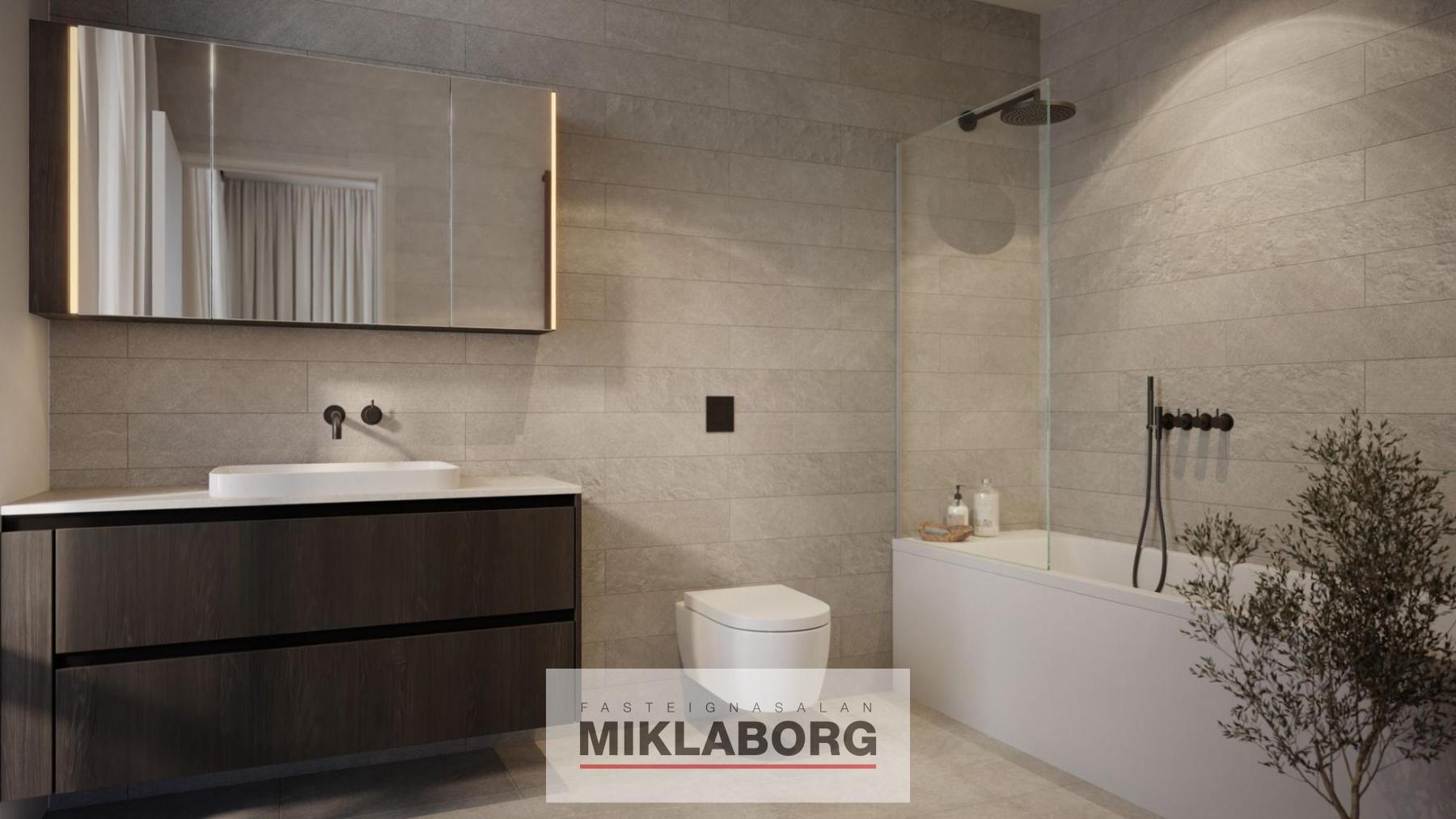 Íbúðir eru afhentar án megin gólfefna. Baðherbergi eru flísalögð.