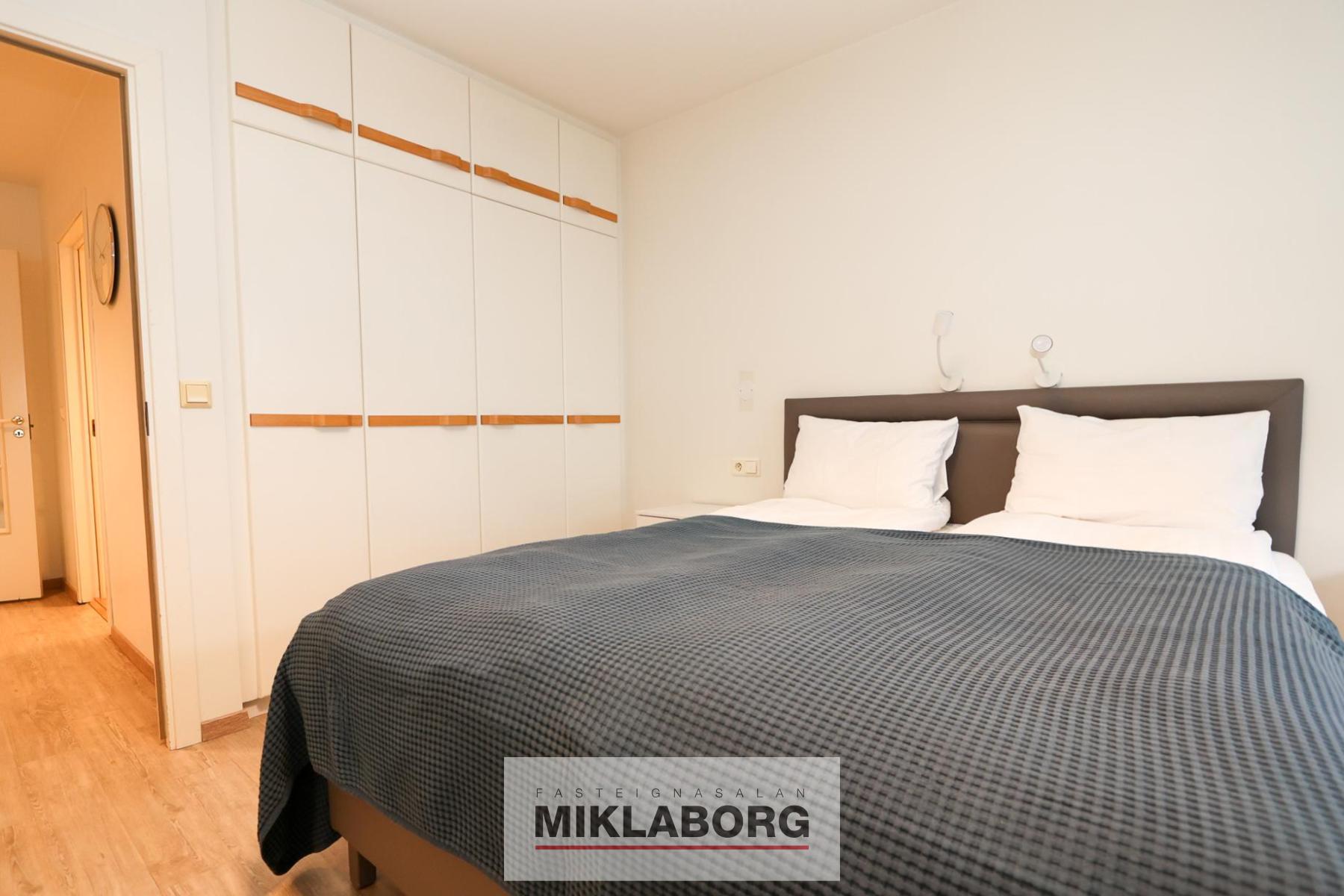 Svefnherbergi Tvö sem eru með fataskáp og útgengt er frá hjónaherbergi út á svalir.