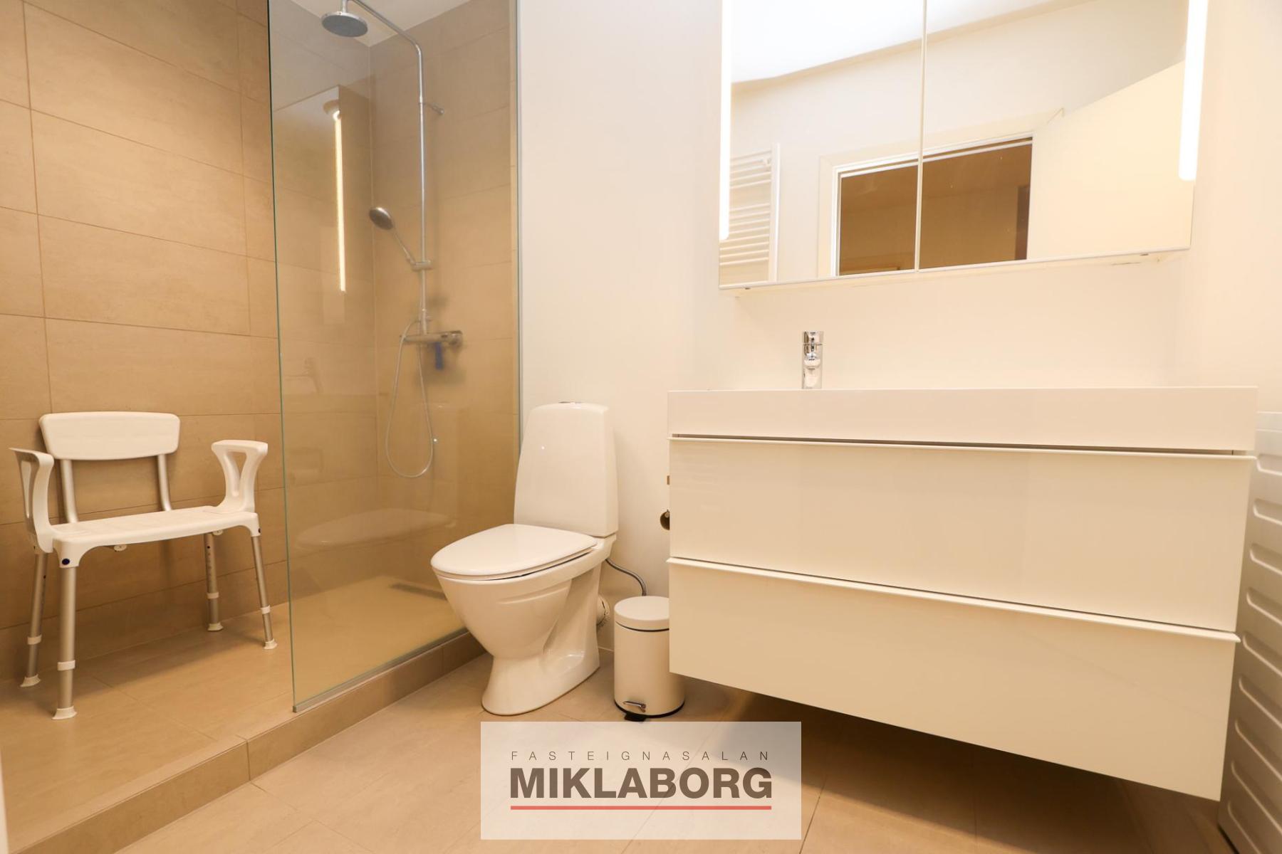Forstofa er inn af snyrtilegri rúmgóðri sameign með lyftu. Innan íbúðar er tvöfaldur viðarfataskápur.