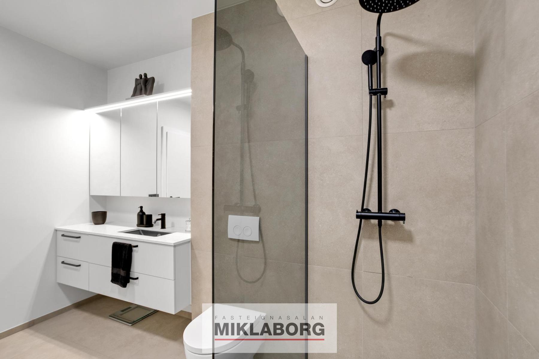 NÁNARI LÝSING: 3ja herbergja íbúð á 6. hæð í Silfursmára 4 með bílastæði í bílkjallara merkt D25. Komið inn í anddyri með skápum og þaðan gengið inn í alrými eignarinnar. Eldhús er opið inn í bjartar stofur sem skiptast upp í stofu og borðstofu. Útgengt út á 24 fm svalir í suðvestur. Eldhús er með fallegri innréttingu frá Axis með innbyggðum ísskápa og uppþvottavél. Hjónaherbergi með góðum fataskápum. Barnaherbergi með fataskápum. Baðherbergið er með gólfhita og flísum á gólfi og veggjum að hluta, upphengd salernisskál og vönduð hreinlætistæki. Sér þvottahús er innan íbúðar. Geymsla í kjallara 10,2 fm að stærð. Stæði í bílgeymslu fylgir eigninni.