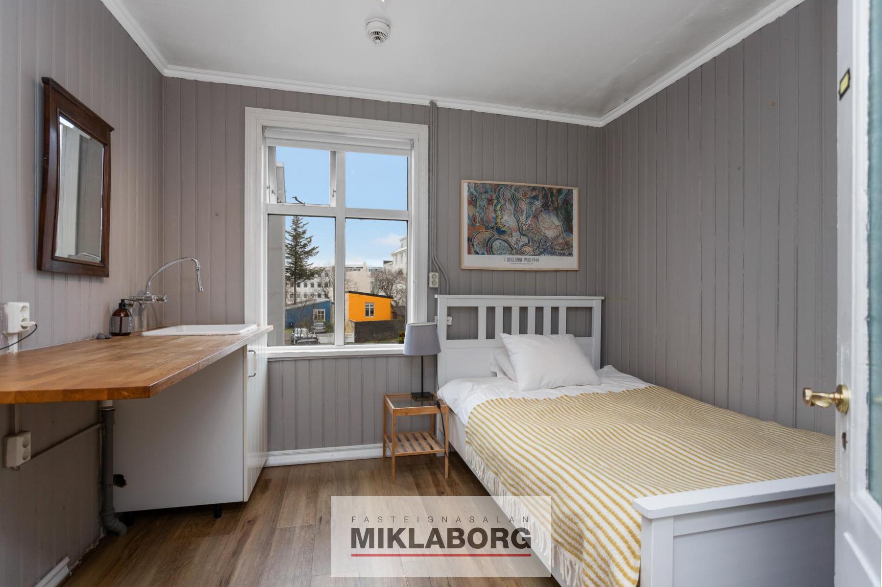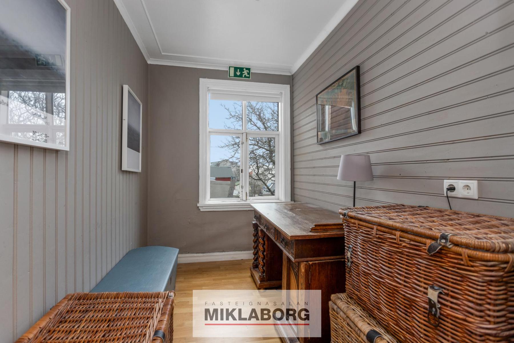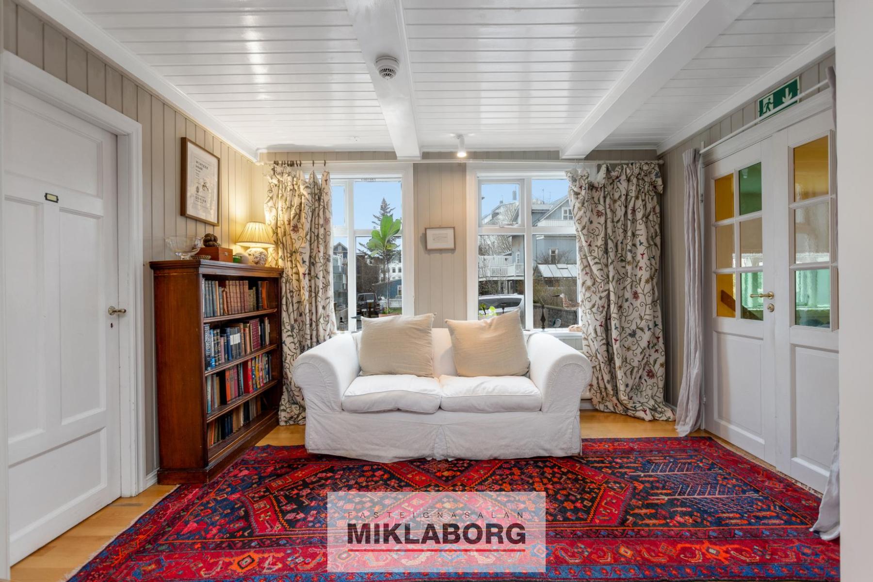 Miklaborg kynnir: Glæsilegt vel við haldið 401,7 fm einbýlishús á þremur hæðum á frábærum stað í hjarta miðborgarinnar. Húsið stendur á eignarlóð og hefur verið skipt upp í fjölskylduheimili og gistiheimili en skipulag hússins býður auðveldlega upp á útleigustarfsemi með fjórum aðskildum einingum.