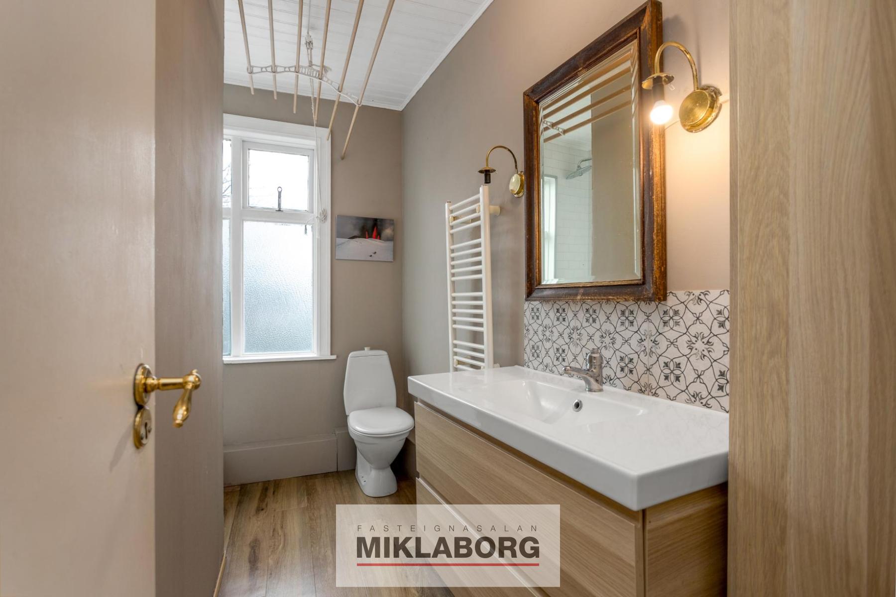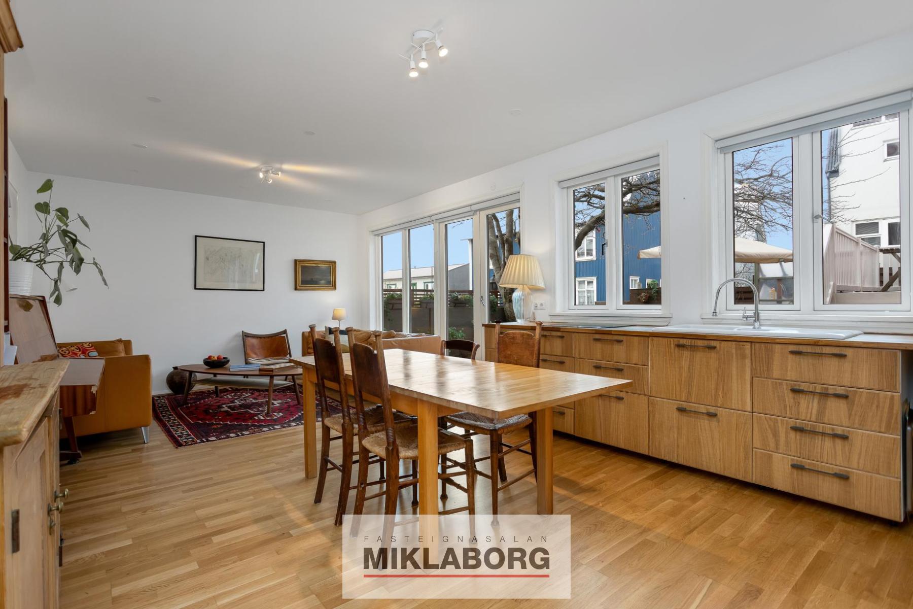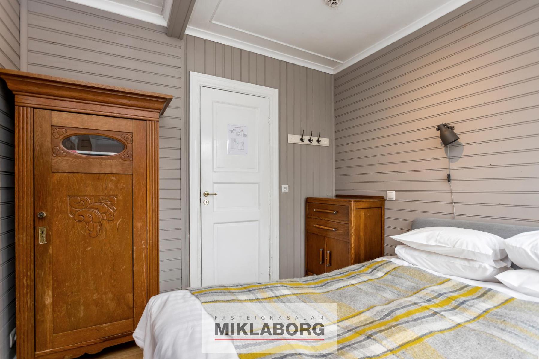 Miklaborg kynnir: Glæsilegt vel við haldið 401,7 fm einbýlishús á þremur hæðum á frábærum stað í hjarta miðborgarinnar. Húsið stendur á eignarlóð og hefur verið skipt upp í fjölskylduheimili og gistiheimili en skipulag hússins býður auðveldlega upp á útleigustarfsemi með fjórum aðskildum einingum.