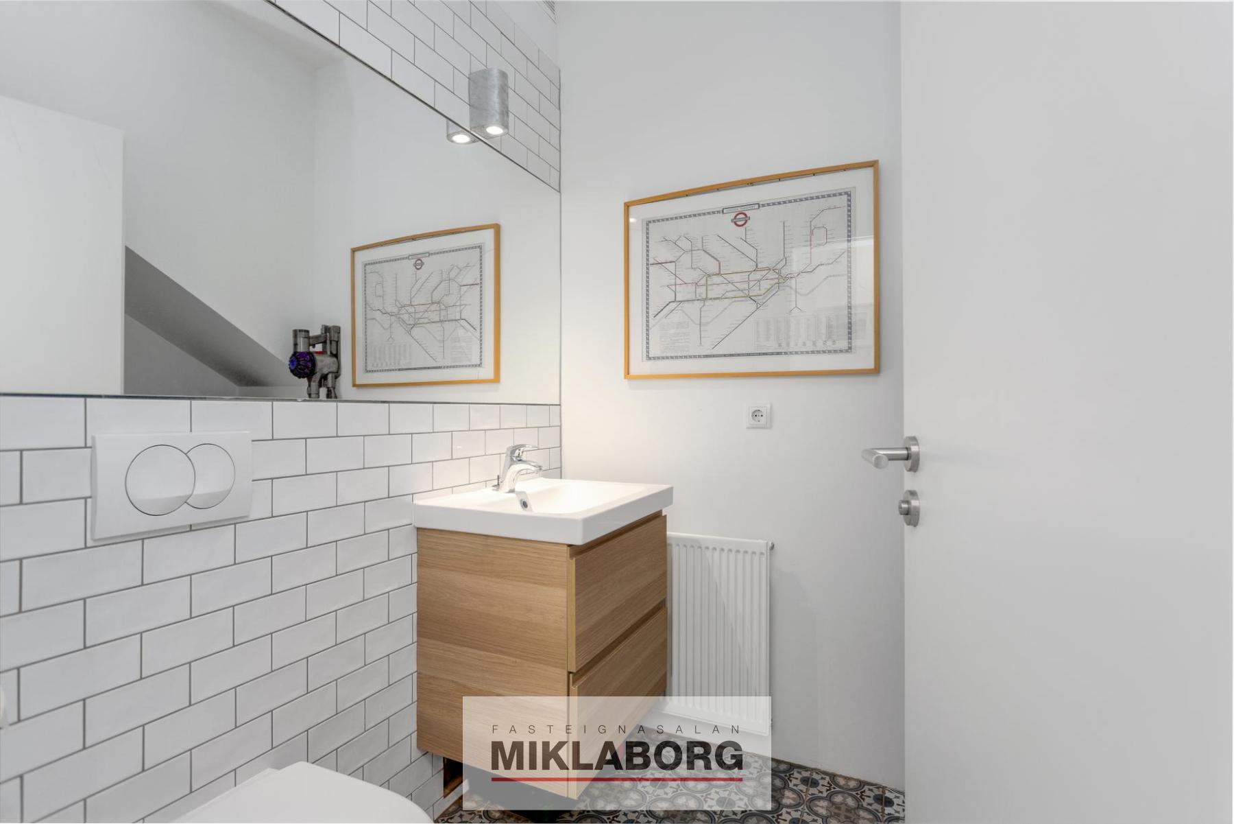 Í kjallara hefur verið útbúin íbúð með þrem svefnherbergjum, baðherbergi, eldhúsi og stofu. Útgengt í sameiginlegan garð á bakhlið hússins.
