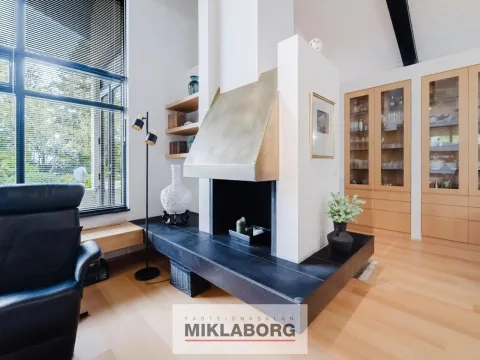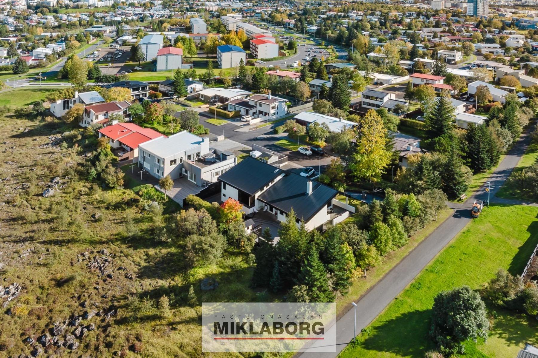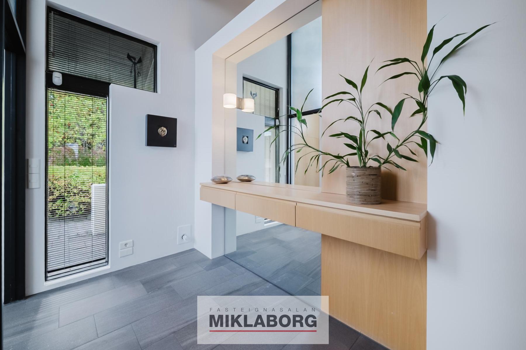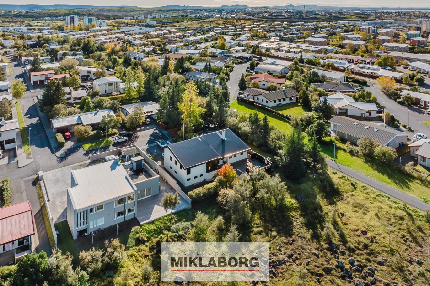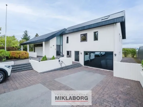 Stofa og eldhús :Úr forstofu er gengið inn í bjarta og rúmgóða stofu með mikilli lofthæð. Þar er arinn og parket á gólfum. Stofan tengist borðstofu í opnu rými og þaðan er gengið inn í eldhús. Þar er parket á gólfi, keramikhelluborð, ofn í vinnuhæð og gott búr. Uppþvottavél og ísskápur fylgja. Úr eldhúsi er gengið inn í flísalagt þvottahús með innréttingum og vaski. Rúmgóð gestasnyrting er inn af forstofu. Gagnger endurnýjun á stofu og eldhúsi átti sér stað á árunum 2000-2004 og á forstofu og gestasnyrtingu á árunum 2018-2020. Efri hæð Komið er upp á rúmgóðan pall með stórum glugga og glæsilegu útsýni yfir borgina og Esju. Þar inn af er annars vegar stórt skrifstofu/sjónvarps herbergi og hins vegar hjónaherbergi og annað minna svefnherbergi með rislofti. Ásamt tveimur fataherbergjum er hjónaherbergið u.þ.b. 30 fermetrar. Baðherbergið er flísalagt með hlýlegri spa stemningu, en þar eru sturta og baðkar í sér rými. Neðri hæð Hér eru tvö herbergi sem hvort um sig er um 16 fermetrar auk flísalagðs baðherbergis með walk-in sturtu og sérsmíðuðum innréttingum. Þá hefur bílskúr verið innréttaður sem notalegt líkamsræktarherbergi auk geymslu. Önnur geymsla er einnig á neðri hæð. Öll neðri hæðin var endurnýjuð á árunum 2018-2021 sem m.a. fól í sér nýja skyggða glugga í stað bílskúrshurðar. Garður Lóðin er afar falleg og vel hönnuð, hellulögð að hluta með góðum palli, barnahúsi og gróðursælum garði þar sem álfasteinn prýðir svæðið. Hægt er að njóta bæði morgun- og kvöldsólar í þessu friðsæla umhverfi.Þetta er einstaklega hlýlegt og vandað heimili á einum af bestu stöðunum í Seljahverfi eða á höfuðborgarsvæðinu ef út í það yrði farið.