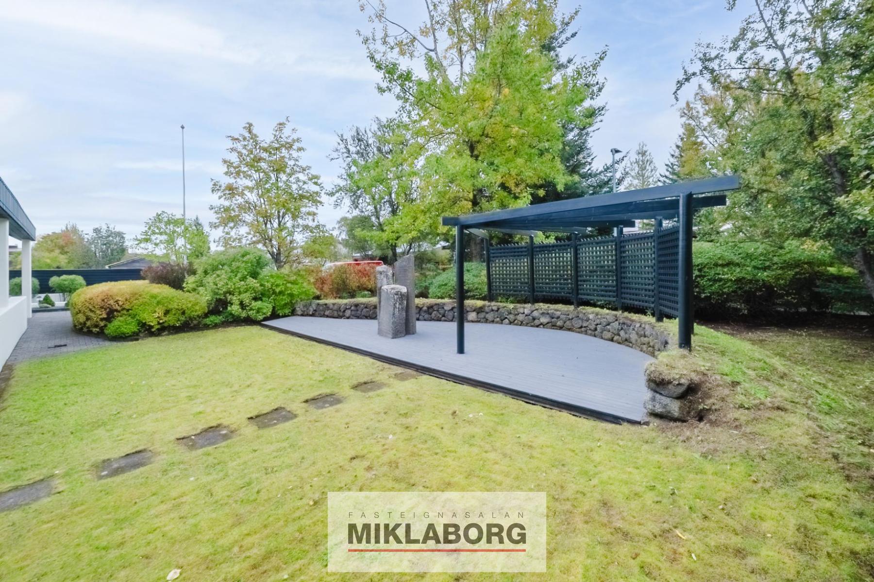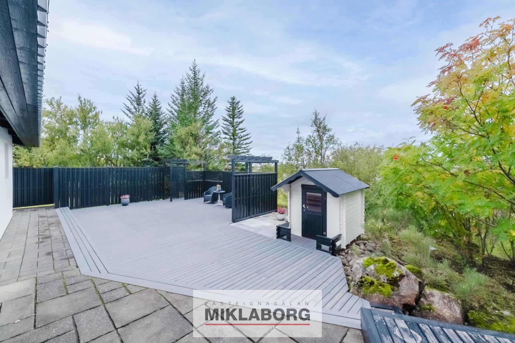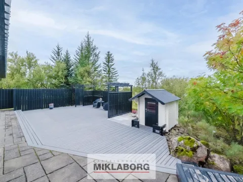 - Stór og fallega ræktuð lóð með palli, barnahúsi og góðri lýsingu