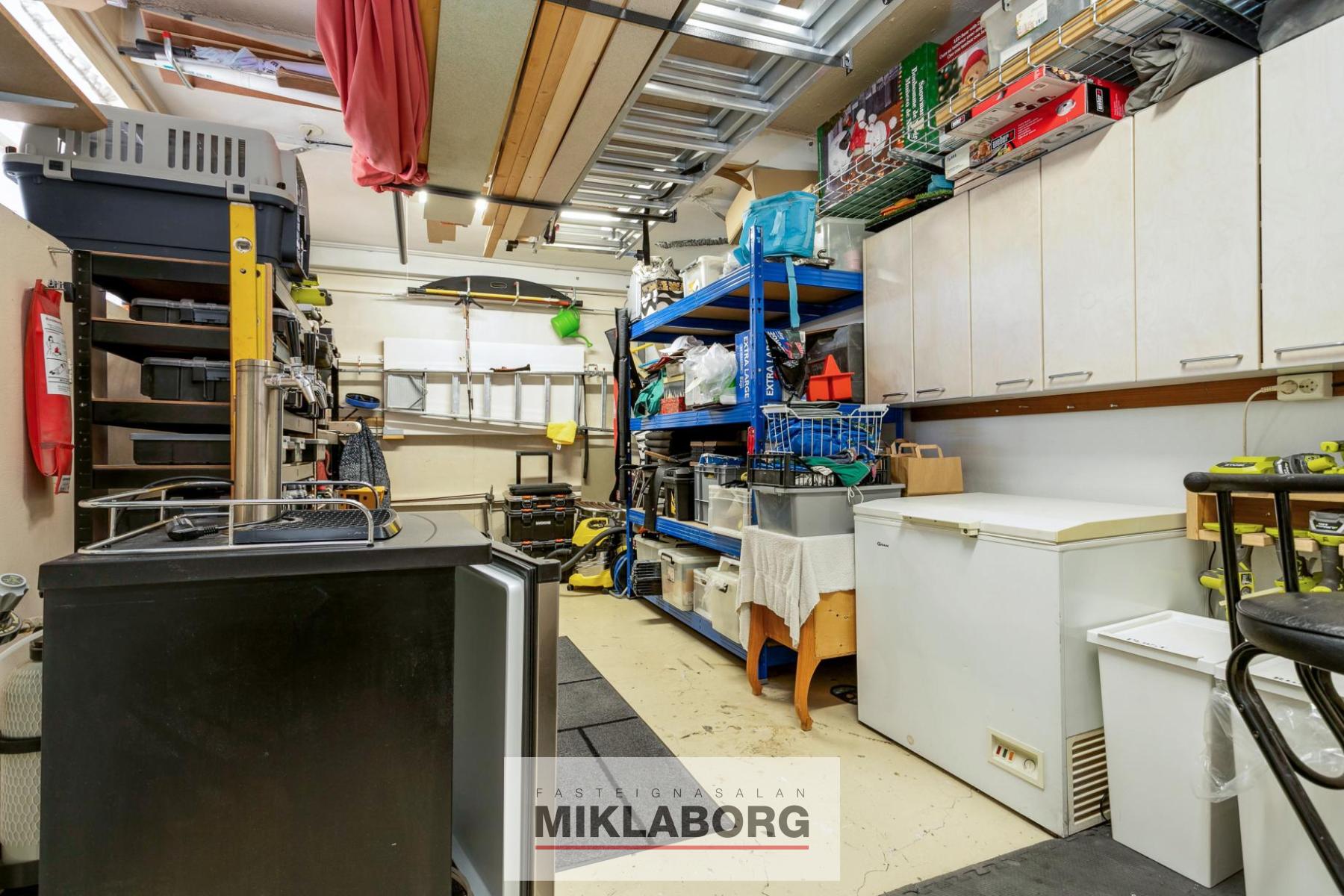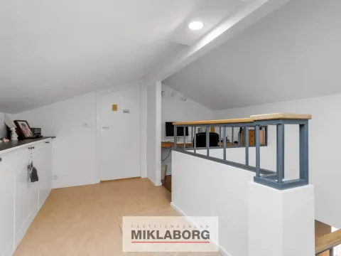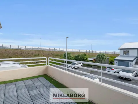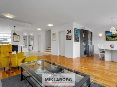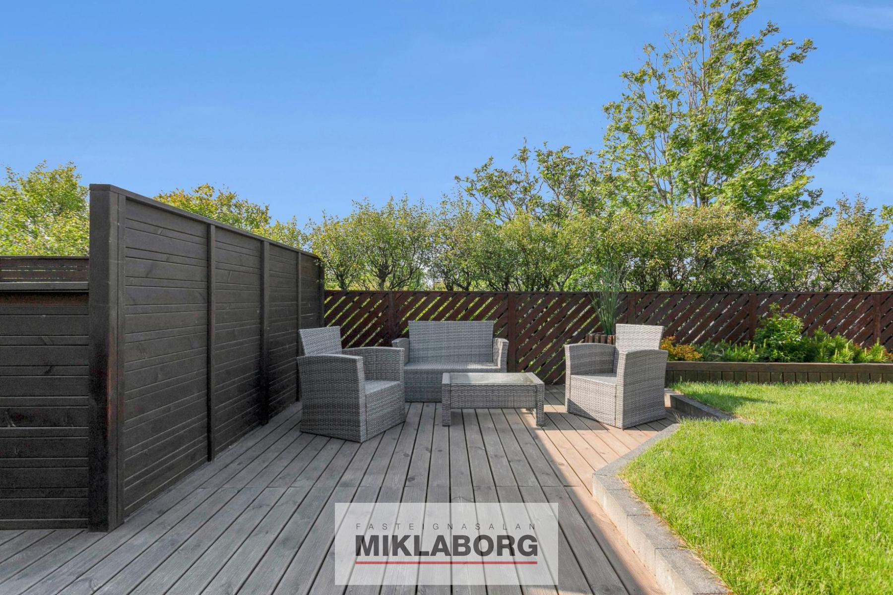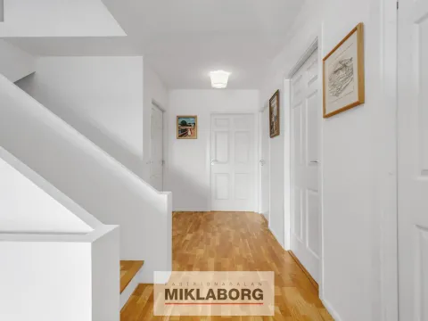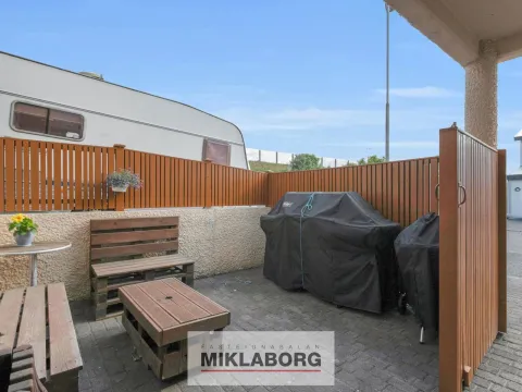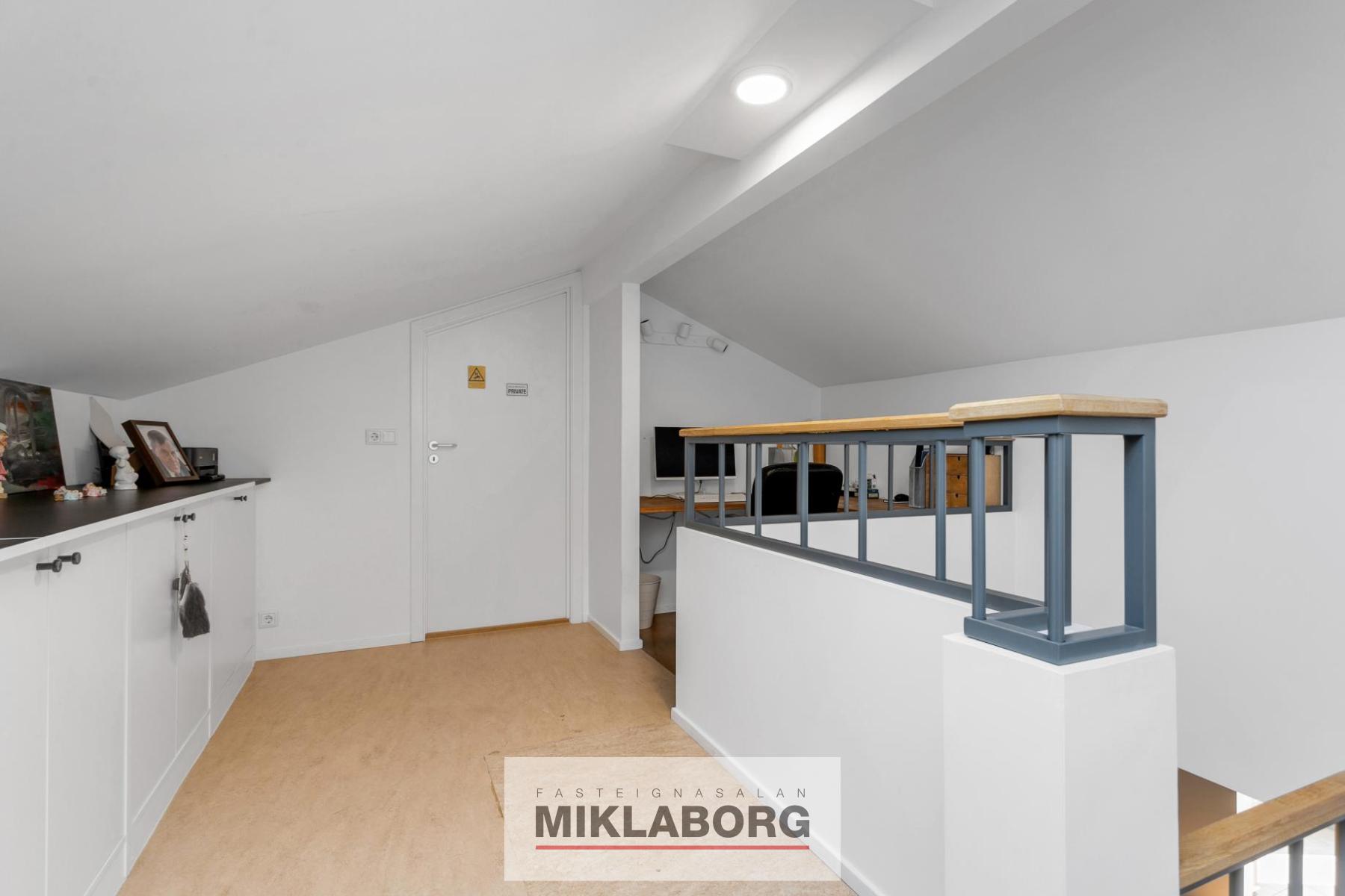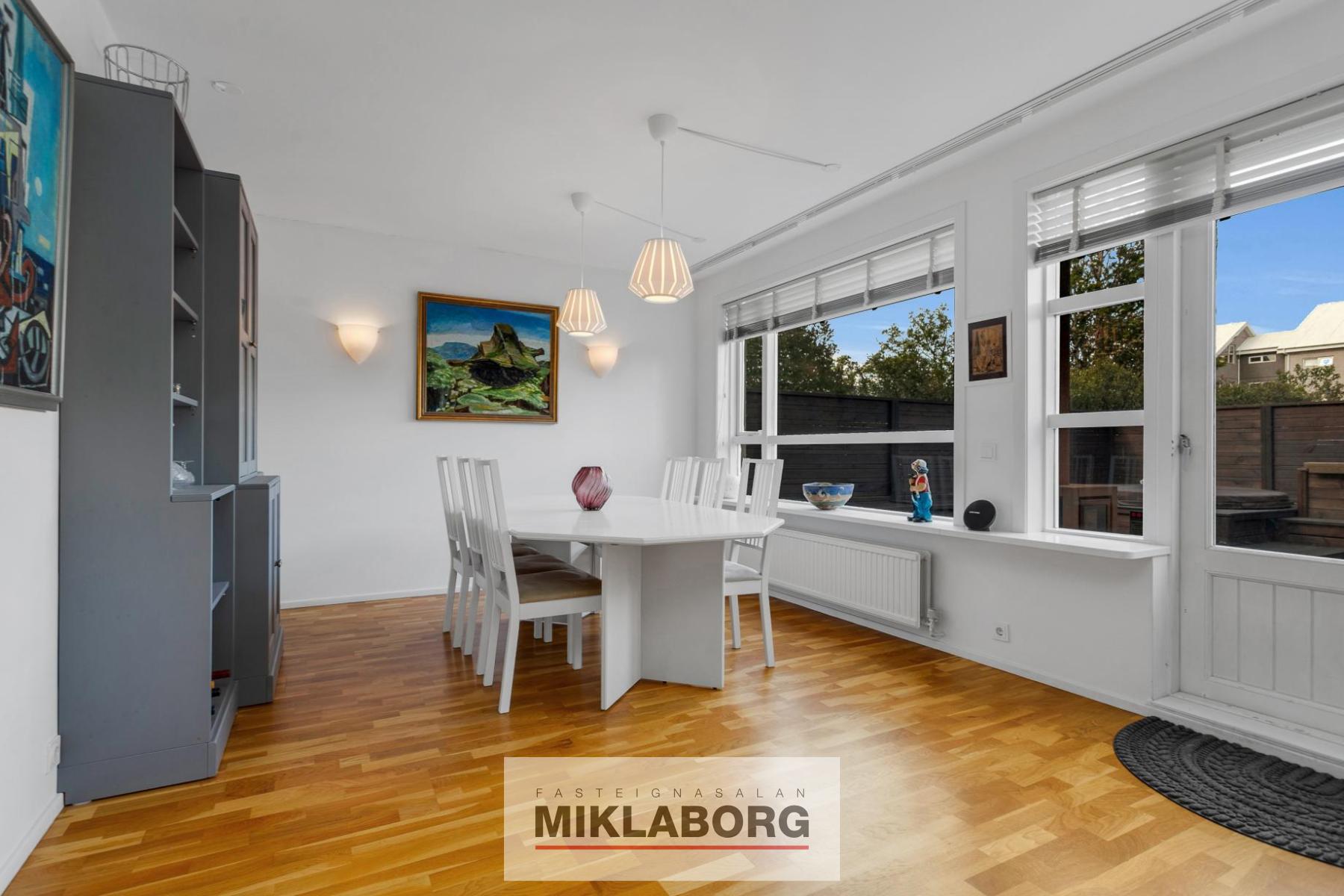 Miklaborg kynnir: Raðhús á tveimur hæðum með innbyggðum bílskúr Á neðri hæðinni er forstofa, eldhús, baðherbergi og stofa. Á efri hæðinni eru 4 svefnherbergi, sólstofa og baðherbergi auk herbergis í innréttuðu risi.