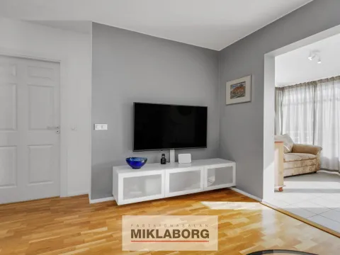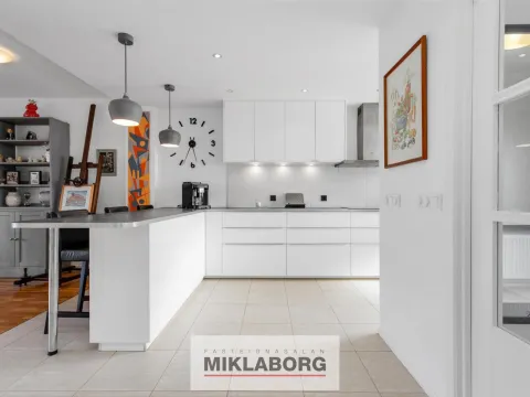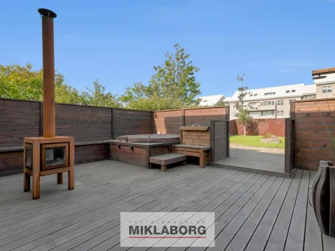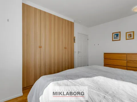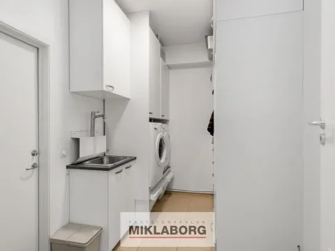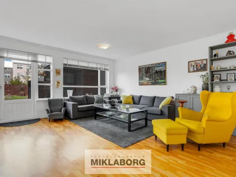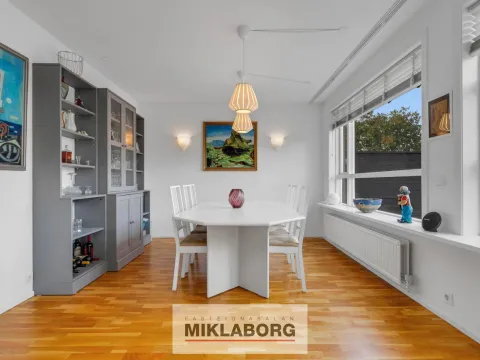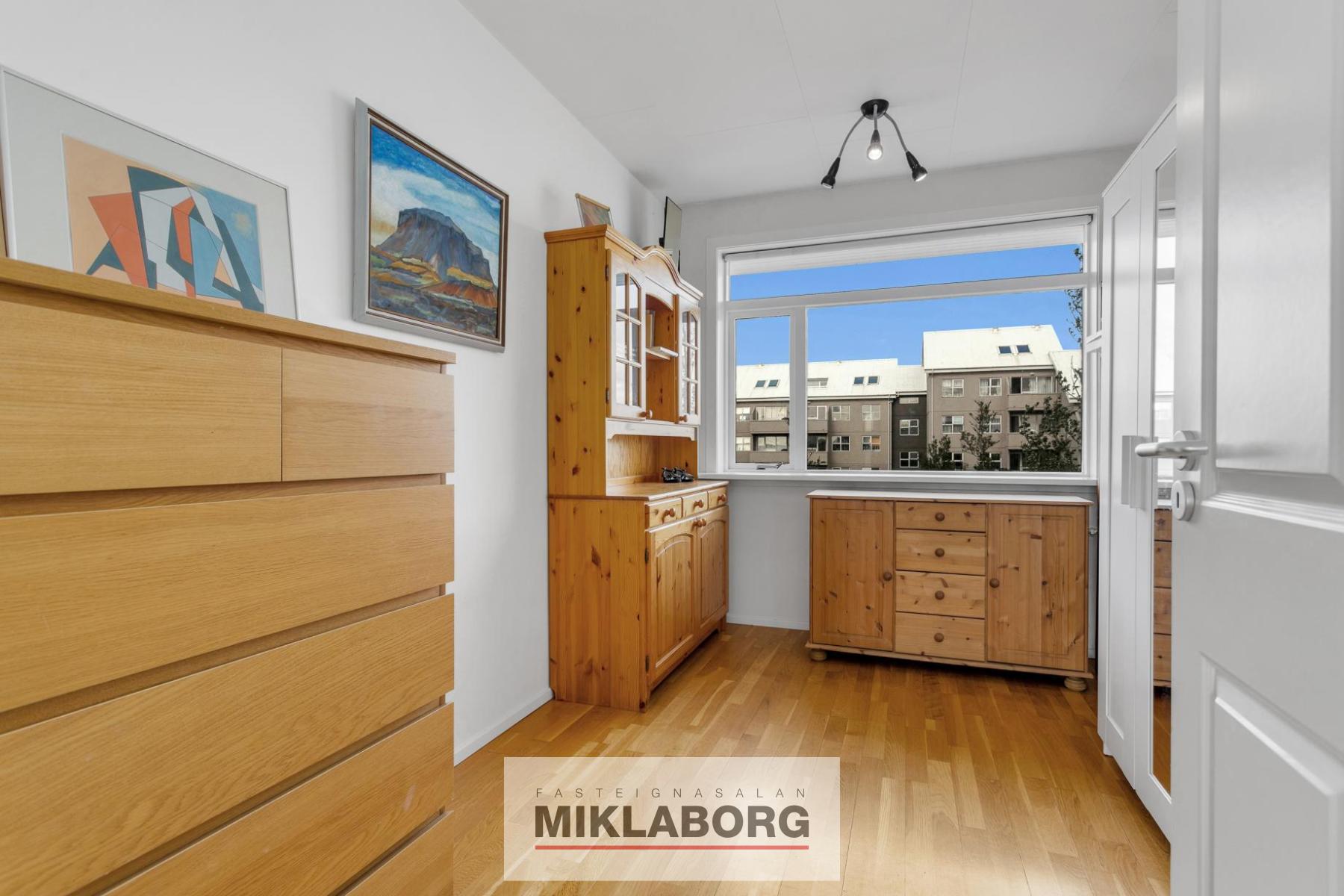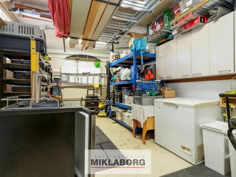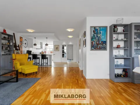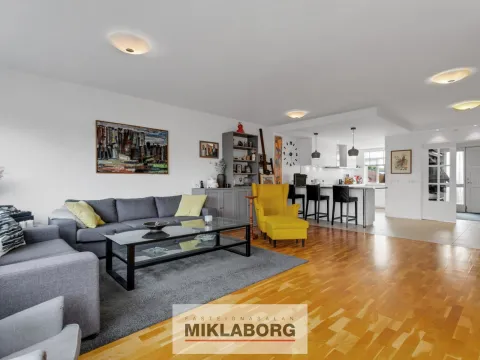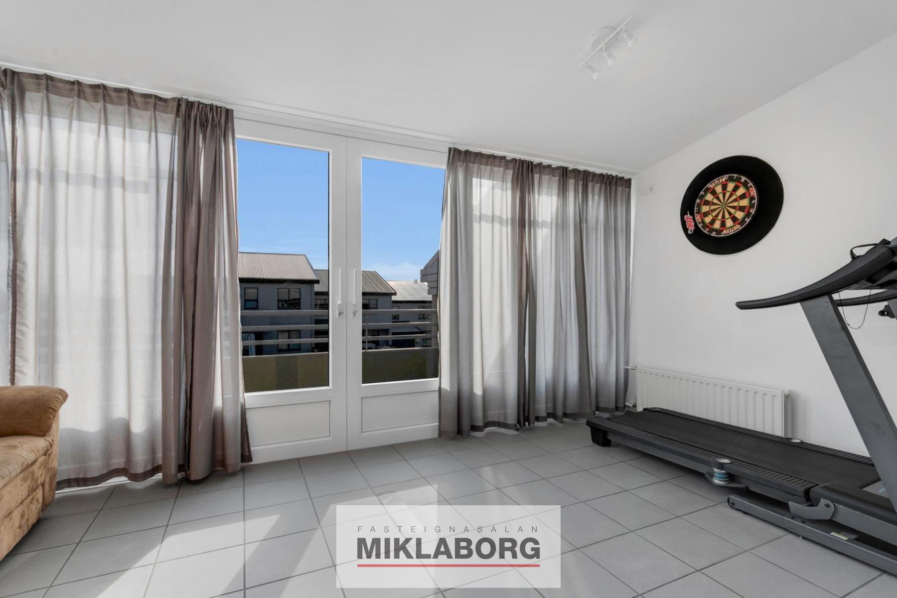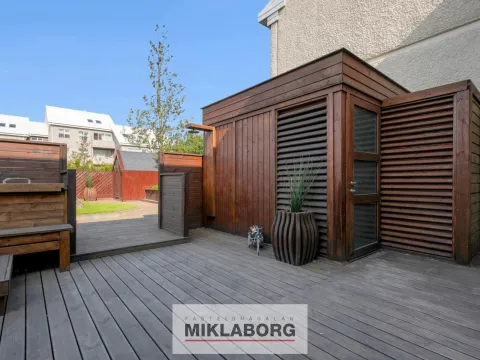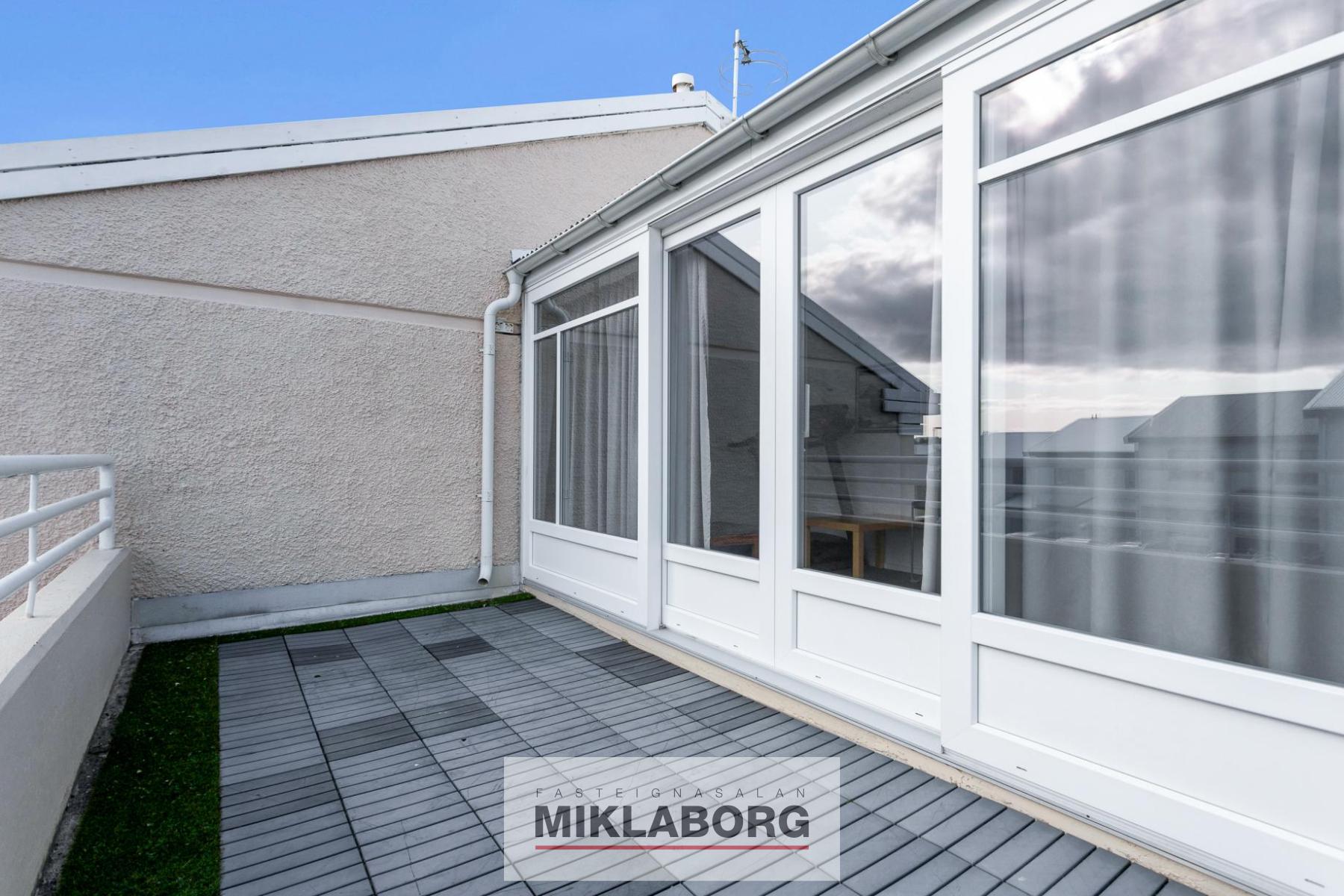 Miklaborg kynnir: Raðhús á tveimur hæðum með innbyggðum bílskúr Á neðri hæðinni er forstofa, eldhús, baðherbergi og stofa. Á efri hæðinni eru 4 svefnherbergi, sólstofa og baðherbergi auk herbergis í innréttuðu risi.