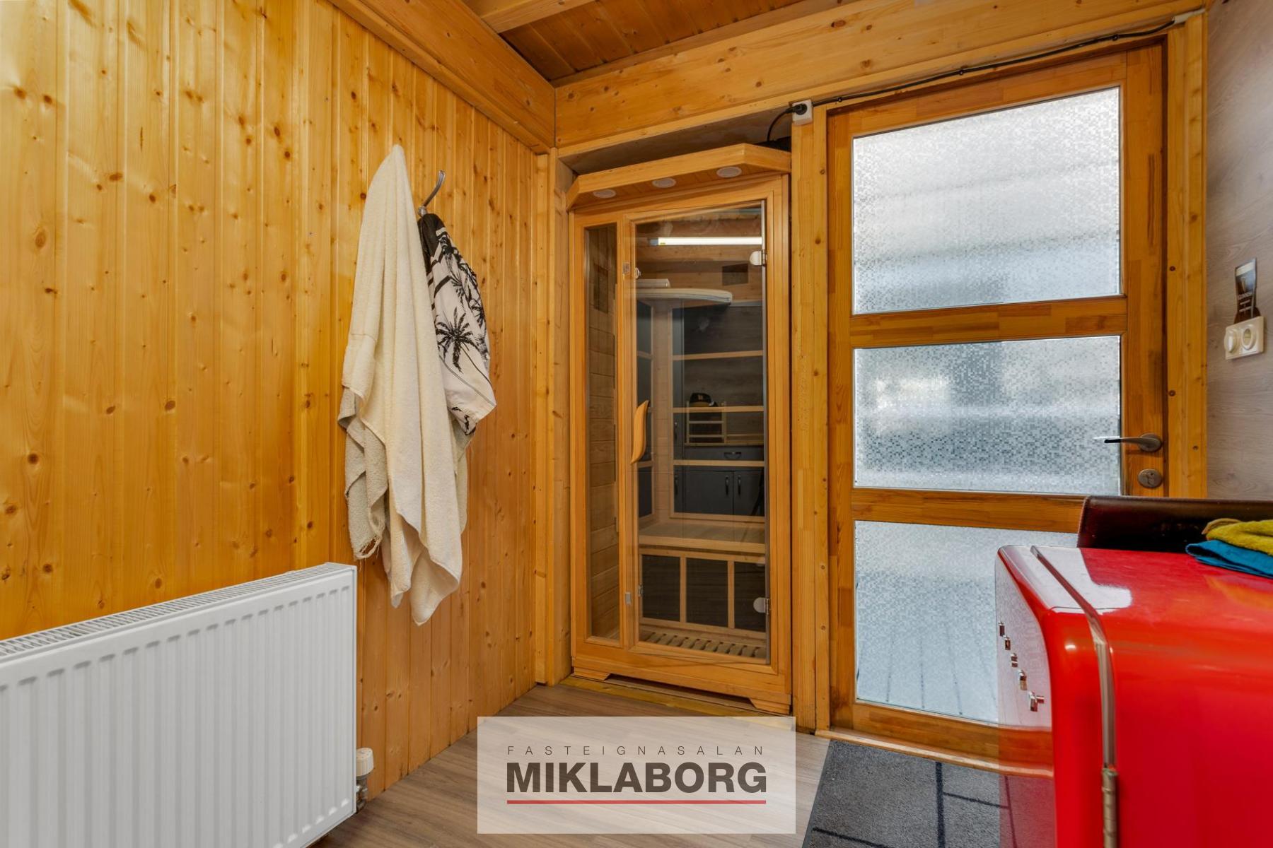 Eftir að núverandi eigendur eignuðust húsið árið 2016 var eldhús bæði stækkað og endurnýjað, bæði baðherbergin endurnýjuð, bæði gluggar og hurðir í sólskála hafa verið endurnýjuð og bakgarðurinn sem er algjör sælureitur hefur fengið yfirhalningu en þar er nú heitur pottur, kaldur pottur, útisturta og garðskáli með saunaklefa.