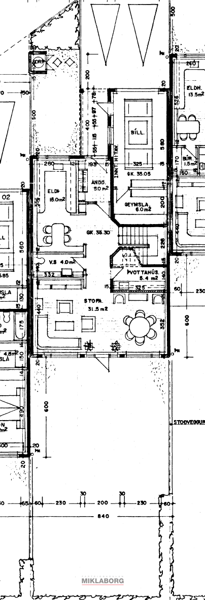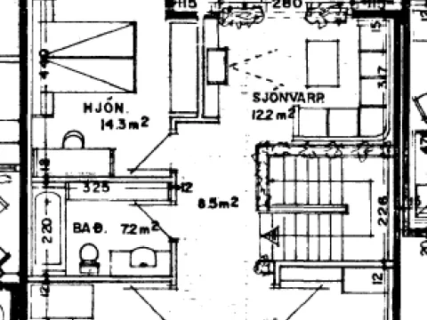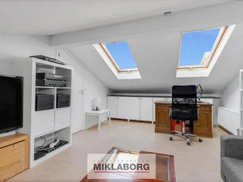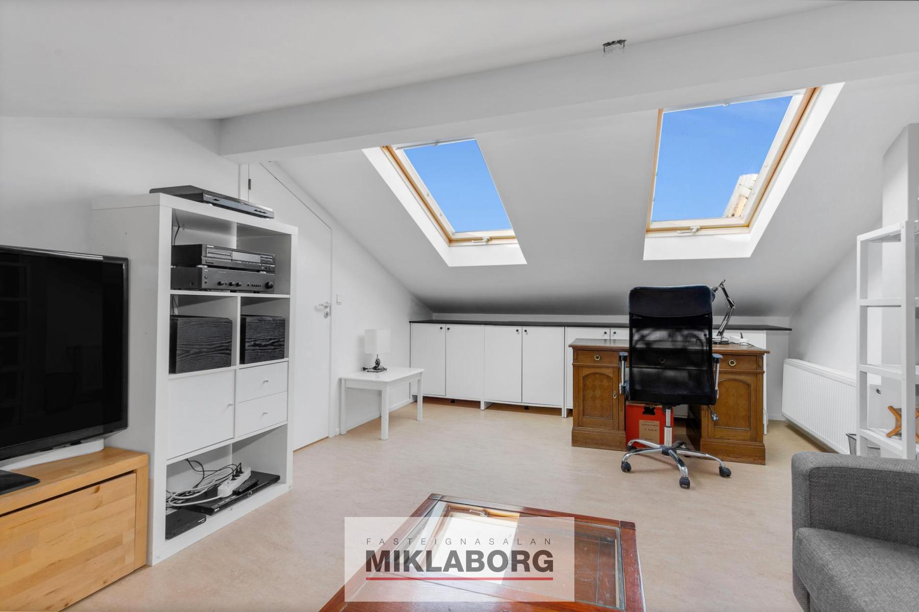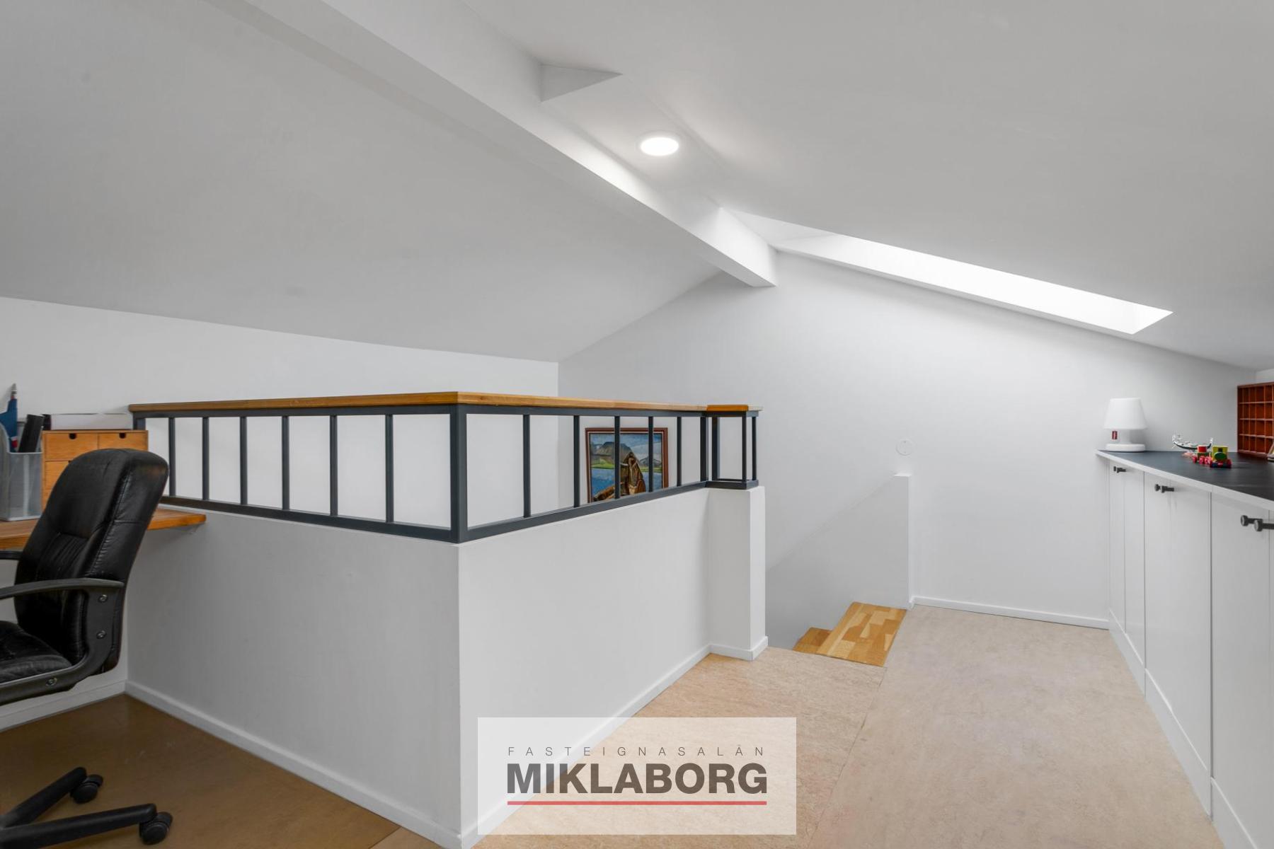 Í risi eru svo vinnurými og svefnherbergi, stór gólfflötur en að mestu undir súð.