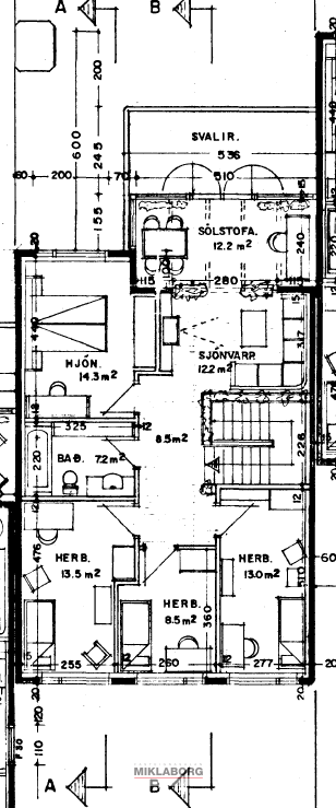 Á annarri hæð eru fjögur svefnherbergi, sjónvarpshol og sólskáli, úr sólskála er gengið út á stórar suður- svalir.