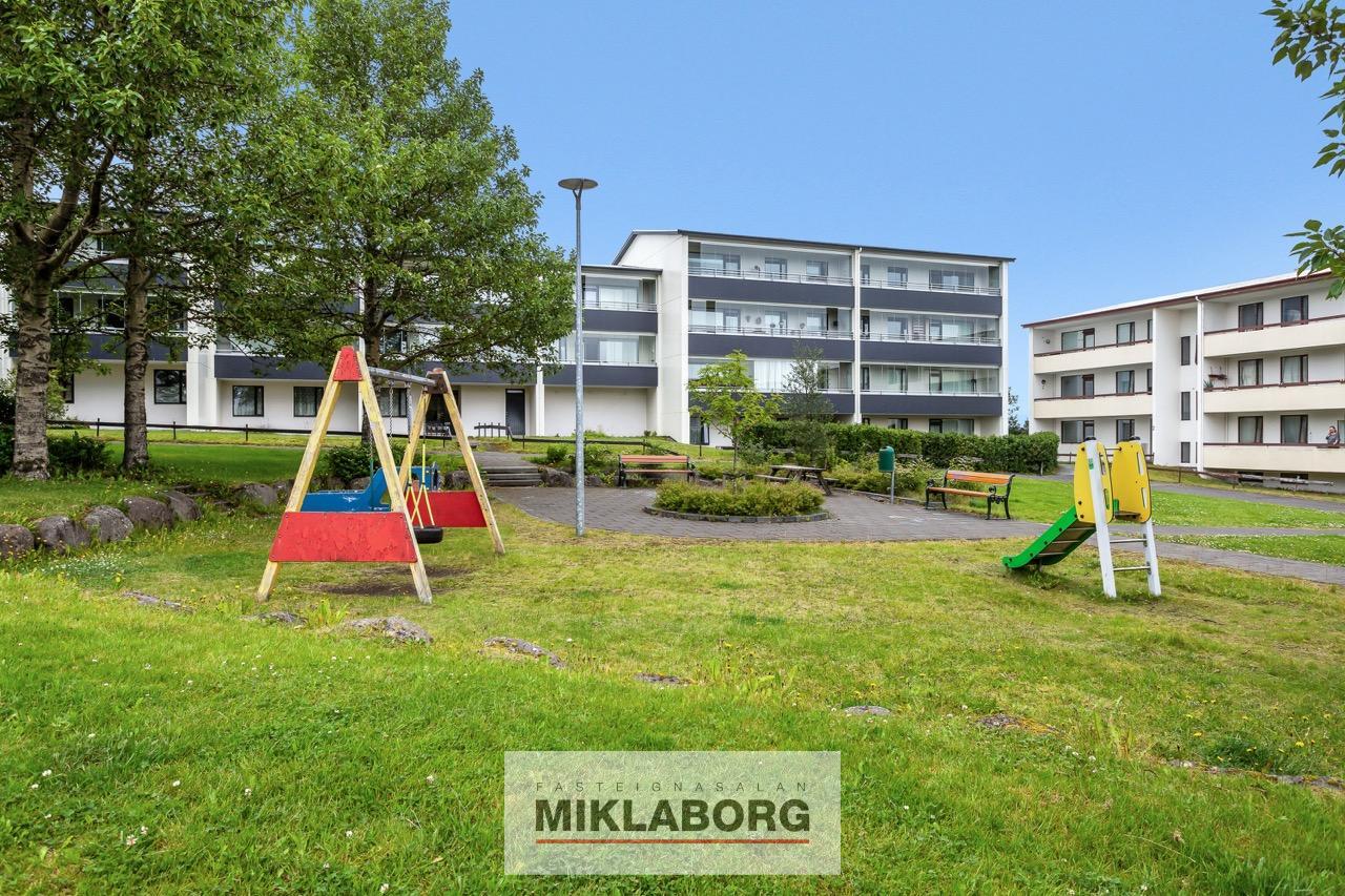 Komið er inn í forstofu með flísum á gólfi og fataskáp. Hjónherbergi með parketi á gólfi og fataskáp. Barnaherbergin eru tvö með parketi á gólfi, annað með fataskáp. Stofa / borðstofa með parketi á gólfi og útgengi á góðar svalir til suðurs. Eldhús með ljósri innréttingu, ofni í vinnuhæð, helluborði, plássi fyrir uppþvottavél, ísskáp og örbylgjuofn. Baðherbergi með flísum á gólfi og veggjum að hluta, sturtu, innréttingu með vask, upphengdu salerni og handklæðaofni. Geymsla er á jarðhæð sem og hjóla og vagna -geymsla. Bílskúr er á lóðinni með rafmagni, heitu og köldu vatni.