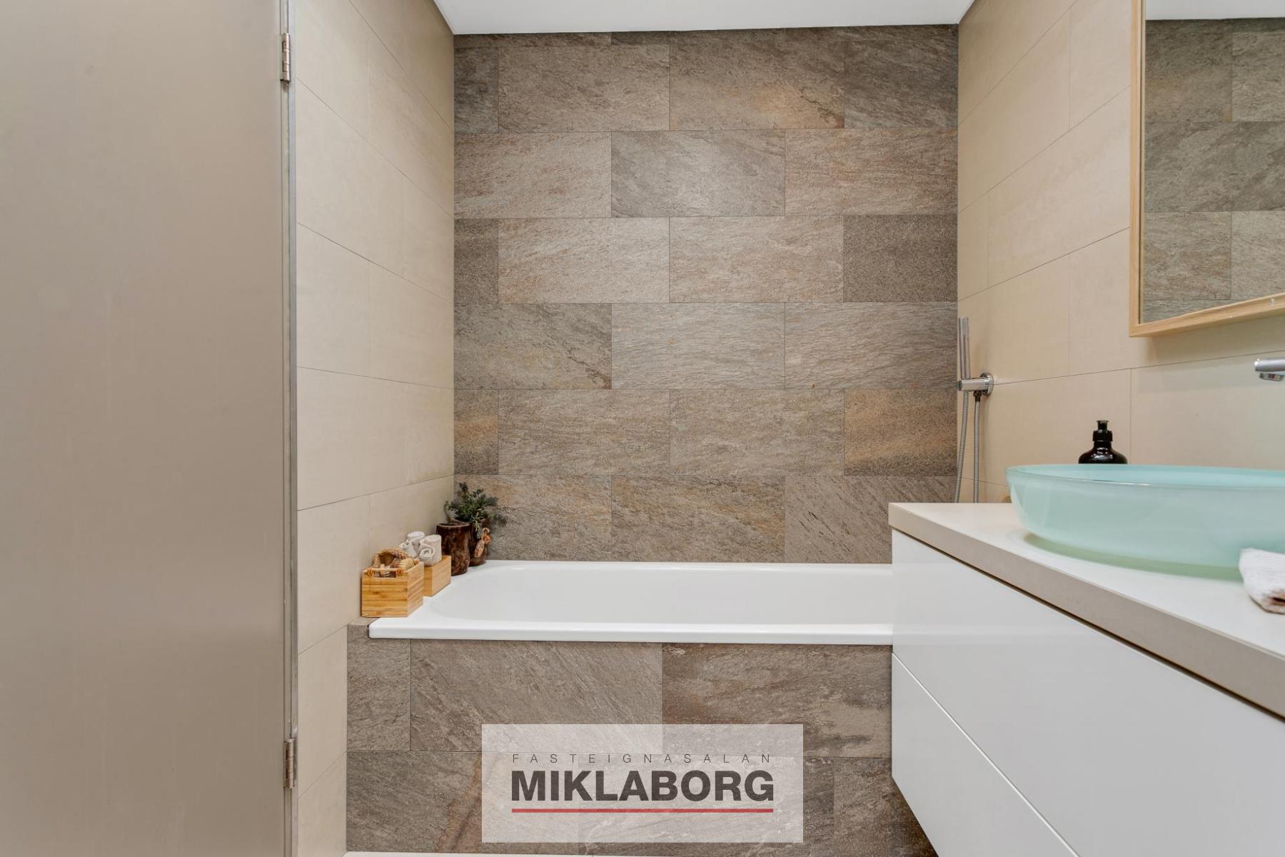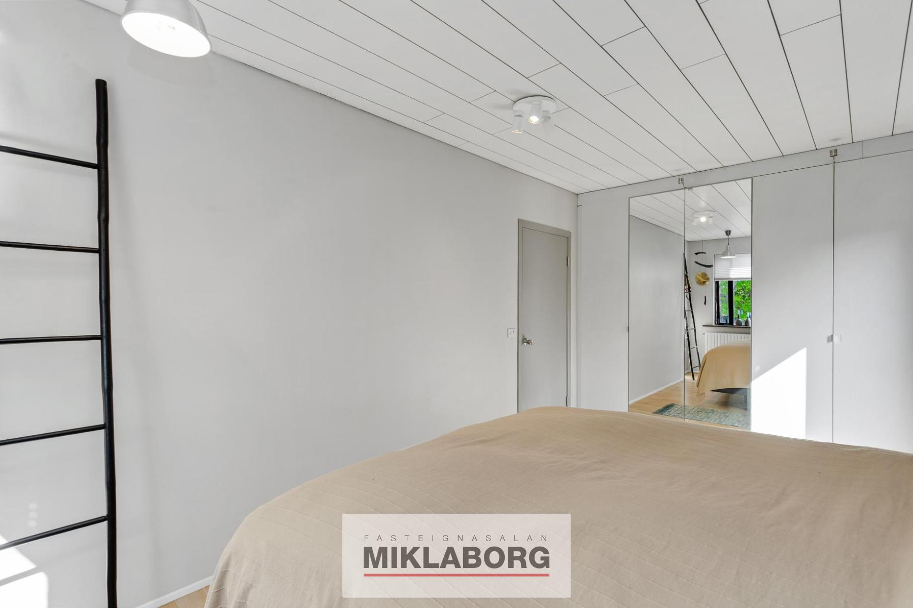 Bílskúr og bílastæði: Sér bílskúr fylgir eigninni. Næg bílapláss eru á stóru sameiginlegu bílastæði fyrir botnlangann auk stæðis við húsið. Góð aðkoma er að eigninni sem er í einstaklega skjólgóðu umhverfi með fallegum og vel hirtum garði.