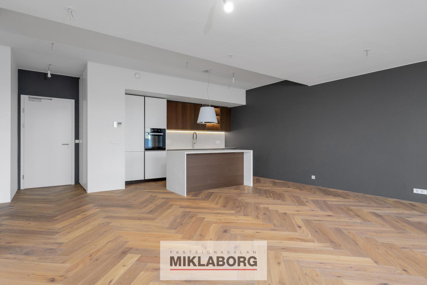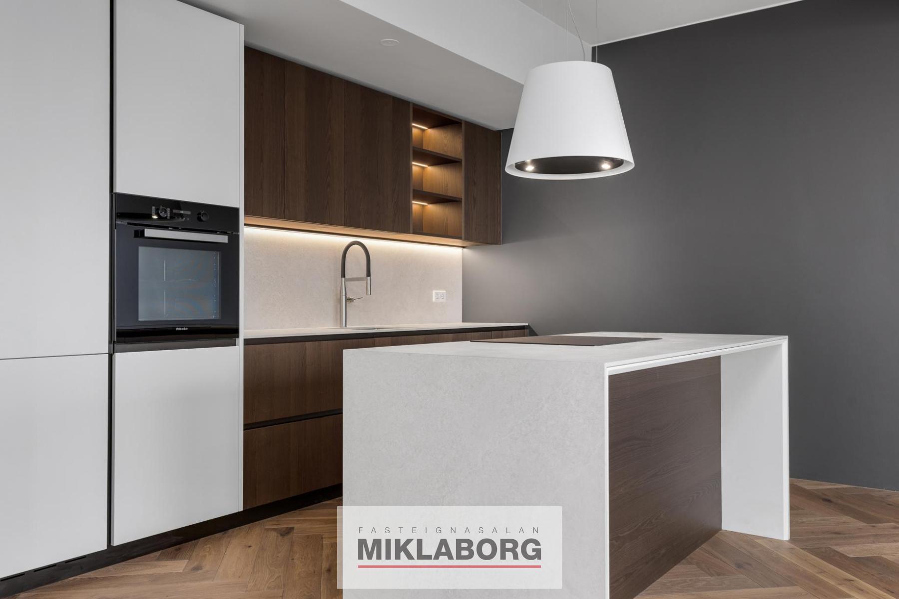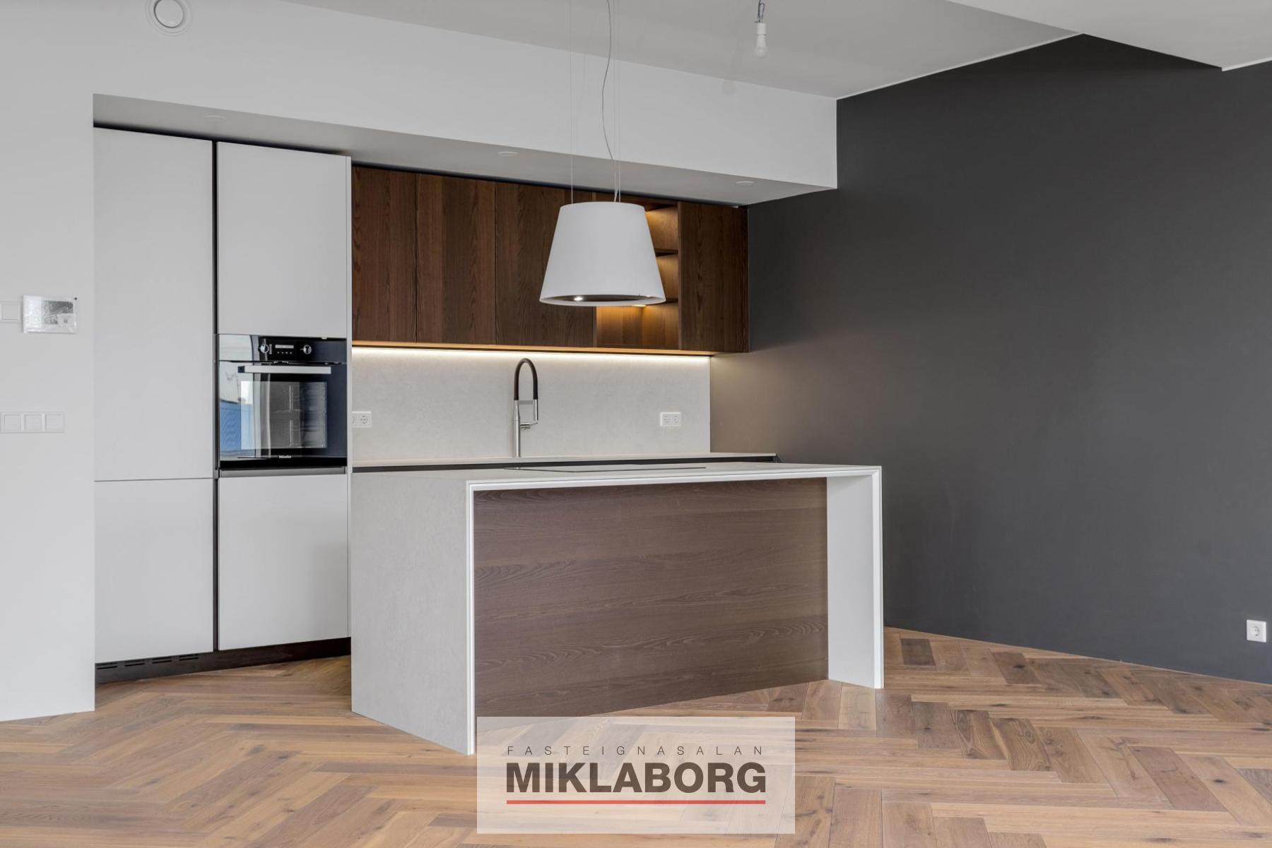 Vandaðar ítalskar innréttingar (Eimur), hágæða tæki frá Miele og Siemens, steinborðplötur, gólfsíðir gluggar og gólfhiti í allri íbúðinni.