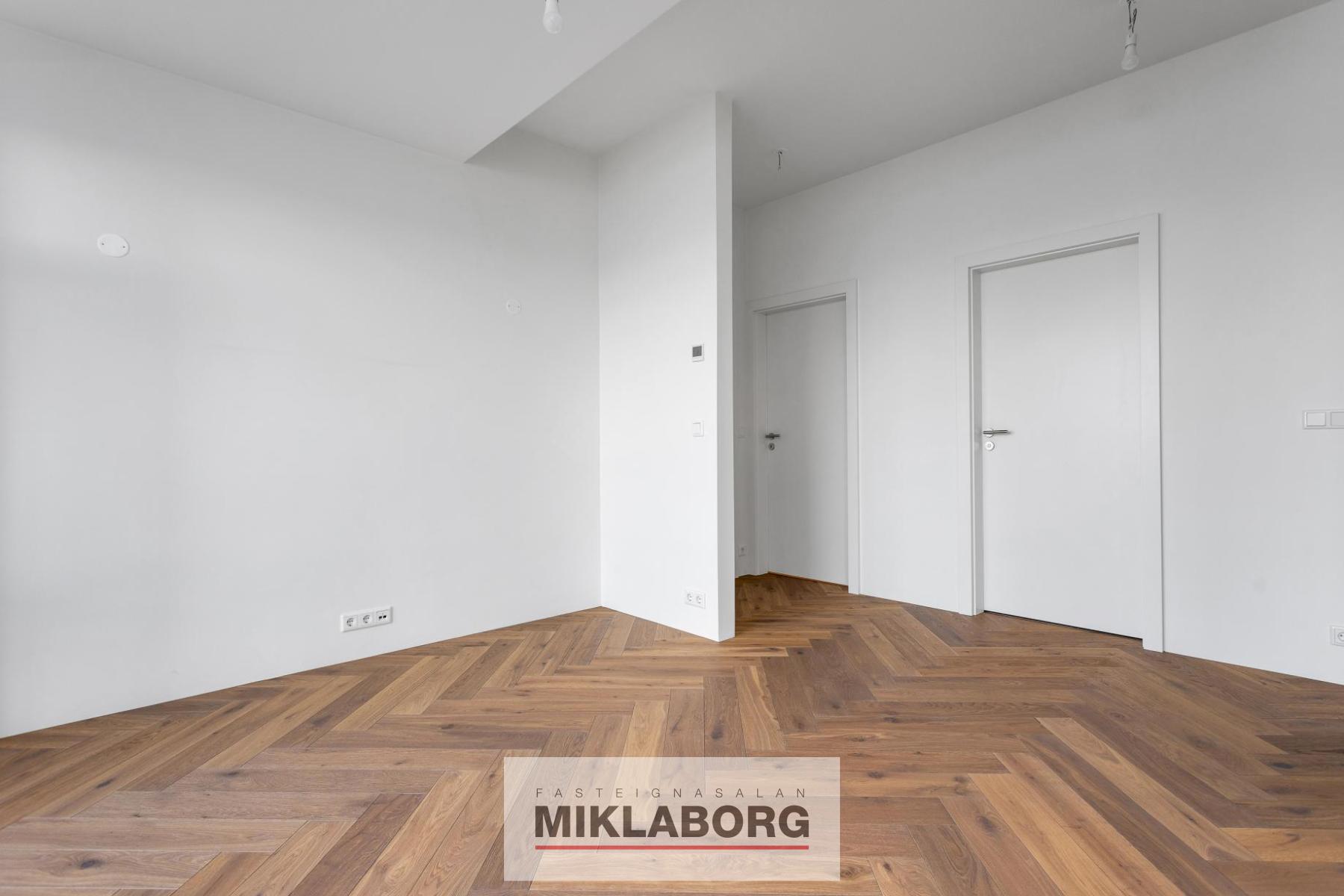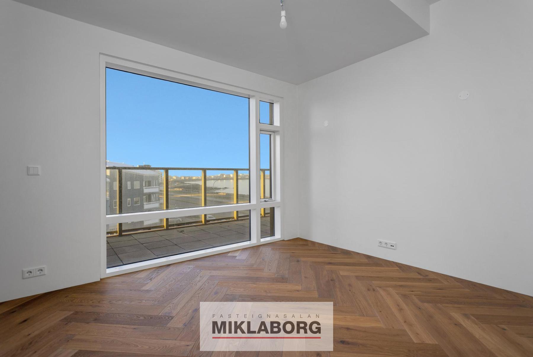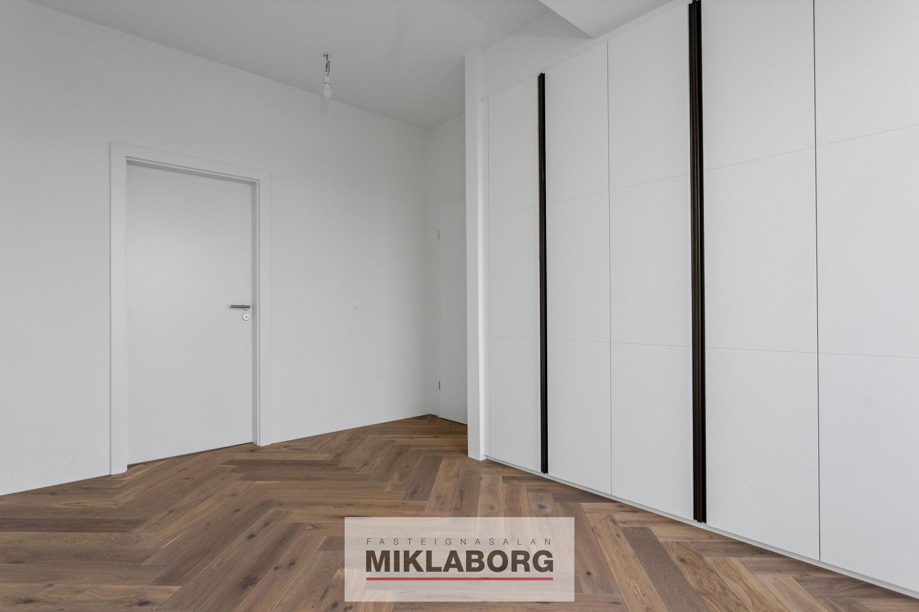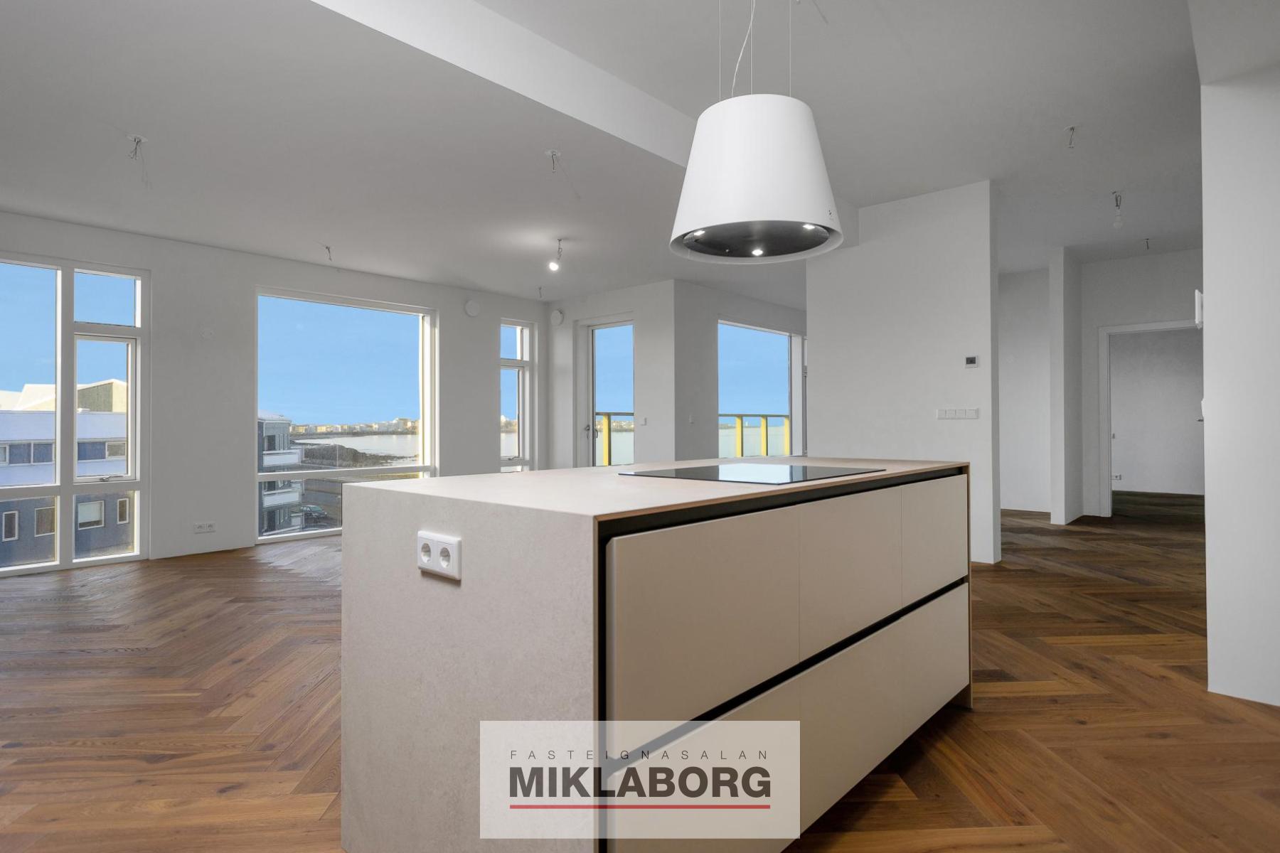 Vandaðar ítalskar innréttingar (Eimur), hágæða tæki frá Miele og Siemens, steinborðplötur, gólfsíðir gluggar og gólfhiti í allri íbúðinni.
