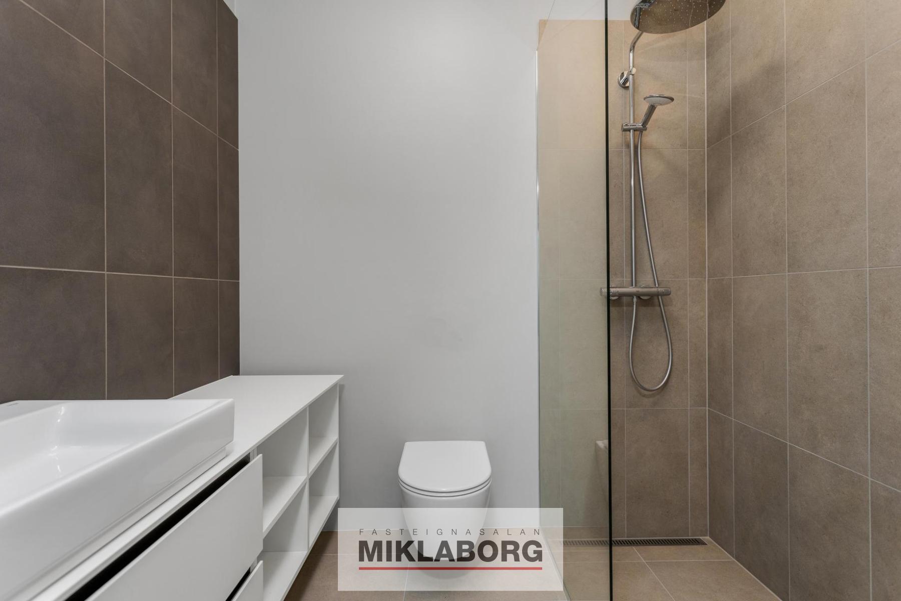 Hjónasvíta: Fataskápar með innfelldri lýsingu, stórir gluggar með æðislegu útsýni, sér baðherbergi með sturtu inn af. Auk þess er annað baðherbergi með sturtu og sér þvottahús með innréttingu.