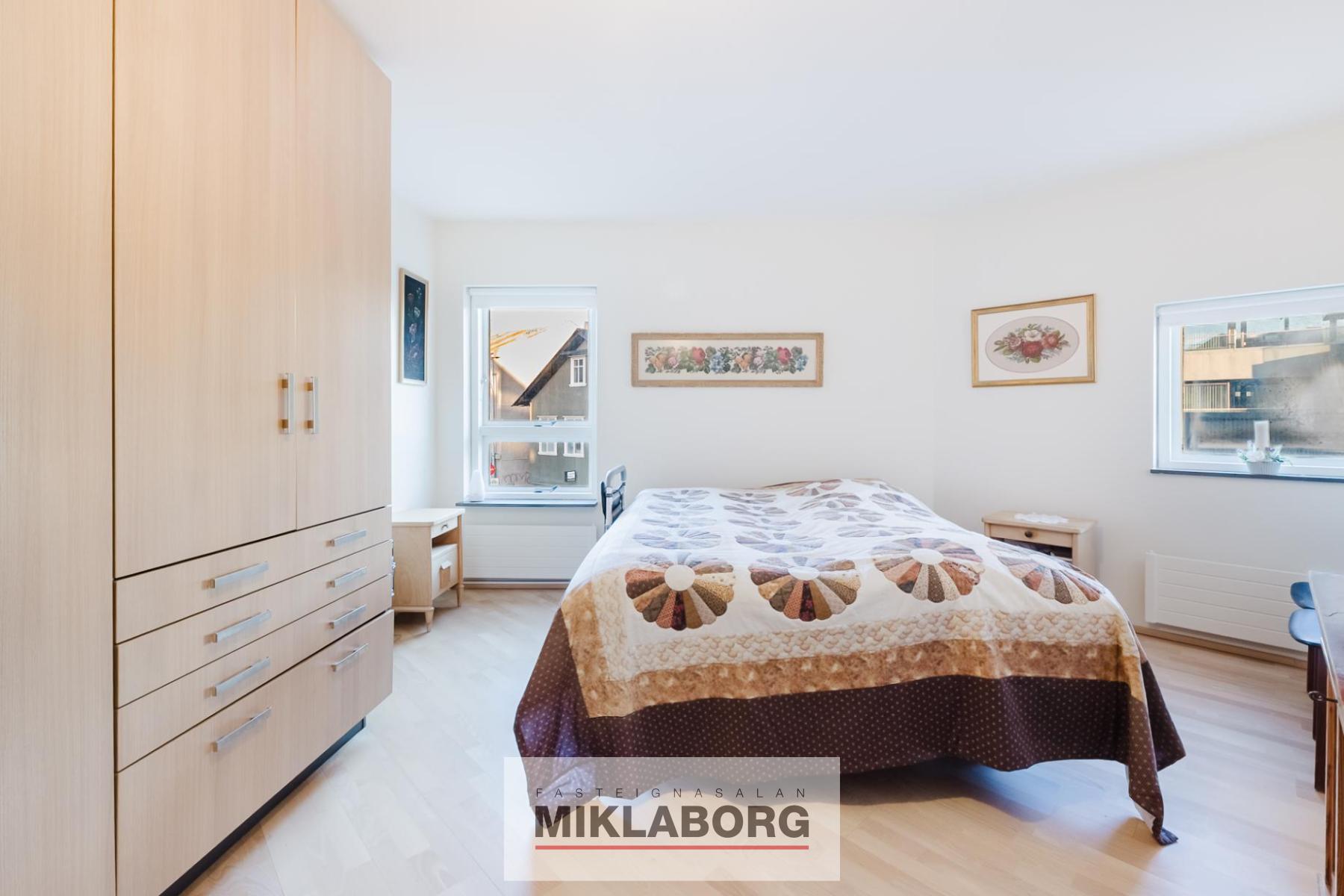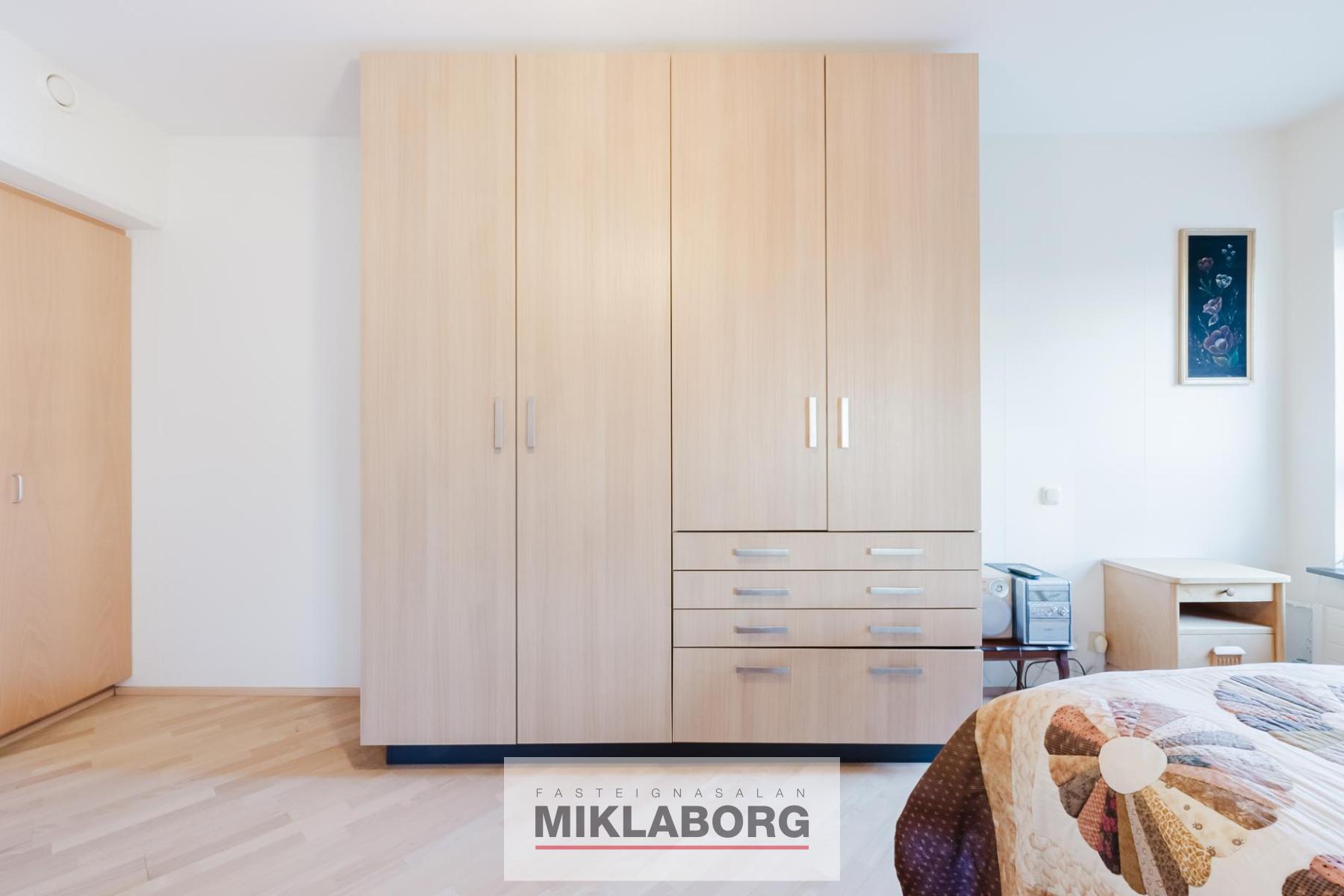 Svefnherbergi er með góðu skápaplássi.